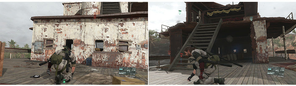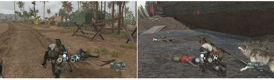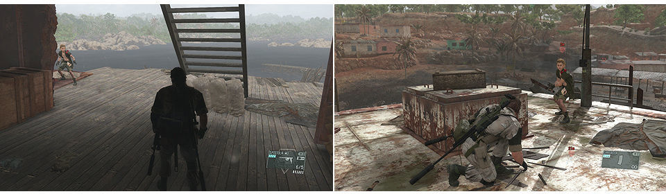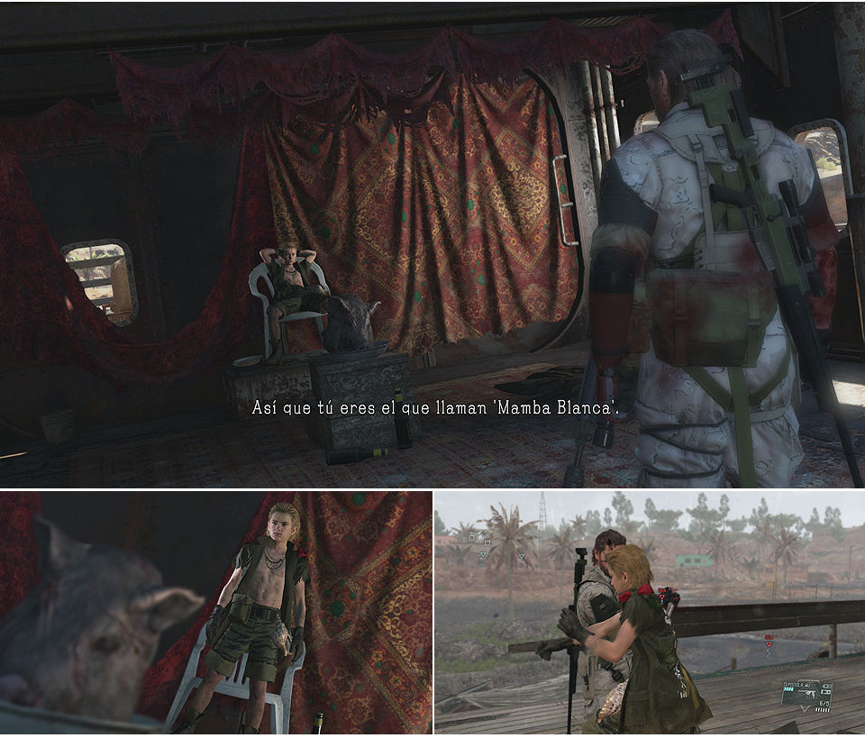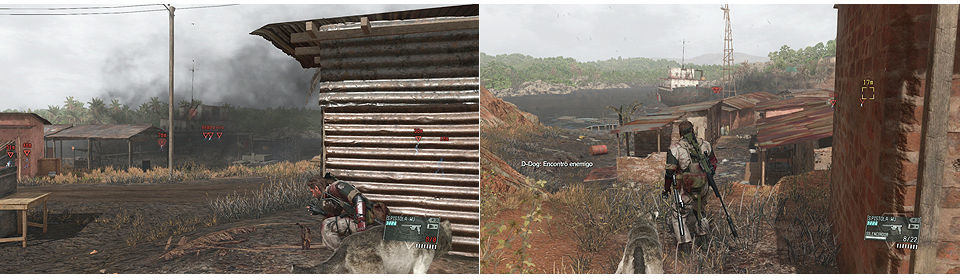 Llegamos hasta la aldea Masa, si vamos por la zona Noreste, la cantidad de niños soldado se multiplica, si usamos a D-Dog nos vendrá muy bien para que localice a los enemigos y así podamos evitarlos, lo bueno es que en todas las zonas de las casas tenemos muchos recovecos para escondernos y pasar desapercibidos.
