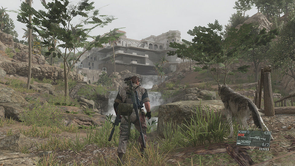 Una vez pasemos el combate, continuamos por la jungla hasta llegar a la gran mansión en el valle de Lufwa, aquí es donde tienen prisionero a Code Talker, desde las zonas elevadas podemos marcar a los enemigos, hay bastantes y no nos interesa entrar en combate.