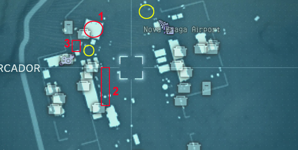 ** Los círculos amarillos son contenedores para extraer una vez que acabemos con ellos