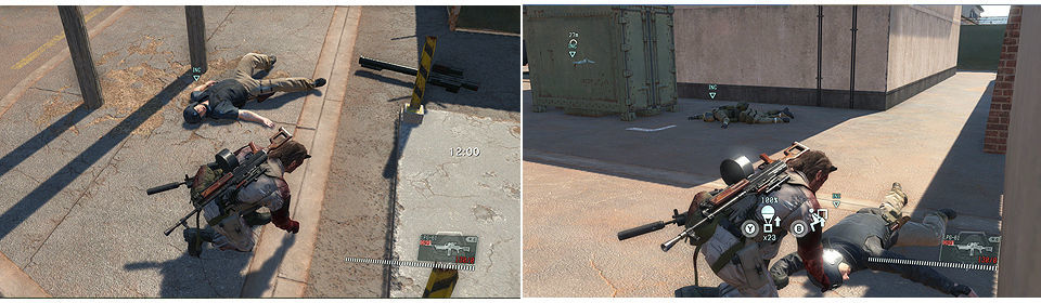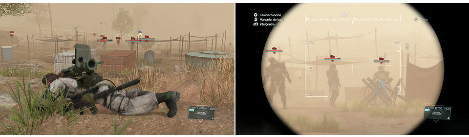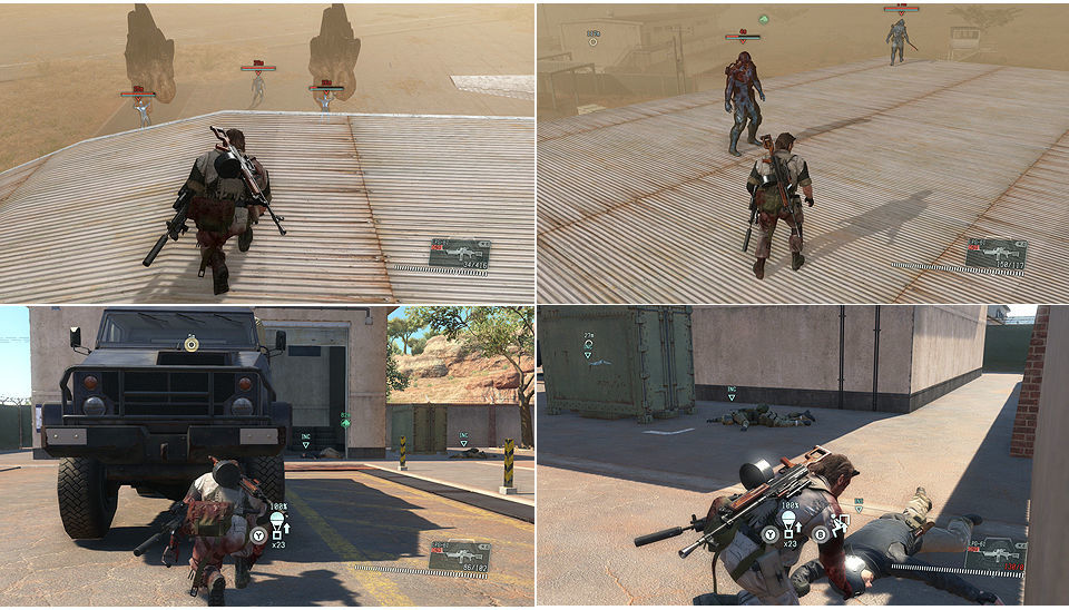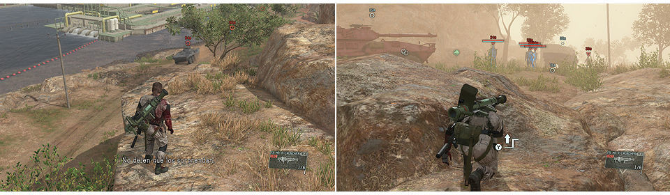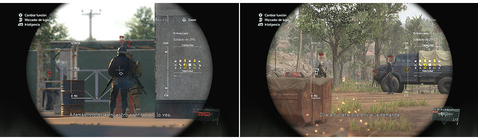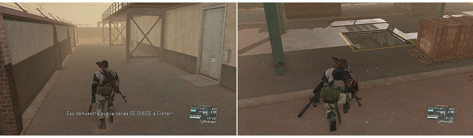 En el mismo campamento Kiziba, según termine la charla nos aproximamos al camión rápido para que salgan los Cráneos, es un lugar perfecto tanto para eliminarlos como para con sigilo extraerlo y huir. Desde la zona de los contenedores y el edificio central, tenemos muchos parapetos para luchar contra ellos, pero la opción de eliminarlos aquí la recomendamos con una potencia de fuego alta, si no nos puede costar varios reintentos (con Quiet podemos ganar algo de tiempo y de daño).