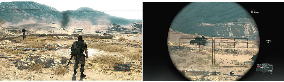 Después podremos elegir el arma que queramos, pero aún así saldremos con el Grom-11 y el que hayamos seleccionado nosotros en el suelo. A partir de aquí la misión se convierte en una lluvia de proyectiles, en total vienen 14 vehículos y un helicóptero aparte de la infantería que les acompaña. Quiet armada con un Brenan causará bajas. Lo más importante es saberse bien como van apareciendo los vehículos para eliminarlos cuanto antes y que no dañen a Quiet.