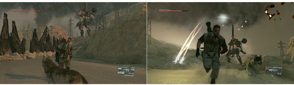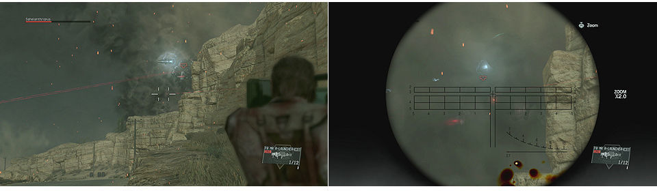 Cuando le quede poca vida, de vez en cuando saltará lejos para disparar su cañón láser. Mucho cuidado con este ataque, es demoledor y además atraviesa las superficies, tendremos que ponernos detrás de rocas macizas. Al helicóptero lo destruye directamente y también puede destruir suministros. Apunta con 2 miras láser, que nunca se pongan sobre nosotros.