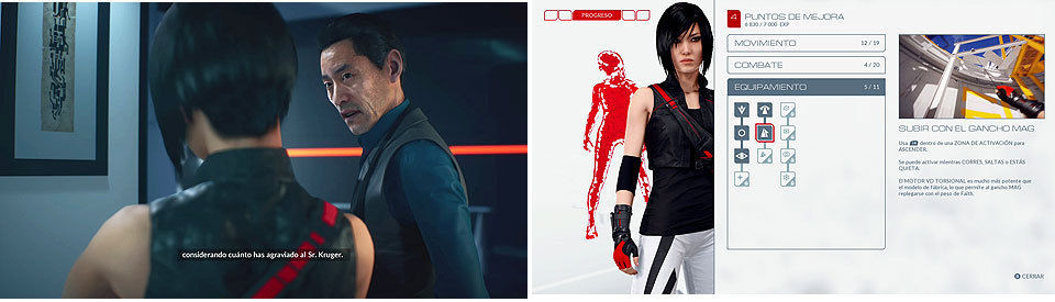 Al llegar a la posición veremos una secuencia con Dogen que nos habla del Anansi Emporium, y además nos dice que nos ha dejado una mejora que necesitaremos en esta misión para llegar a zonas elevadas. Es una de las mejoras del Gancho MAG, ahora aparte de poder balancearnos podemos usarlo para subir a zonas elevadas pulsando LB/L1.