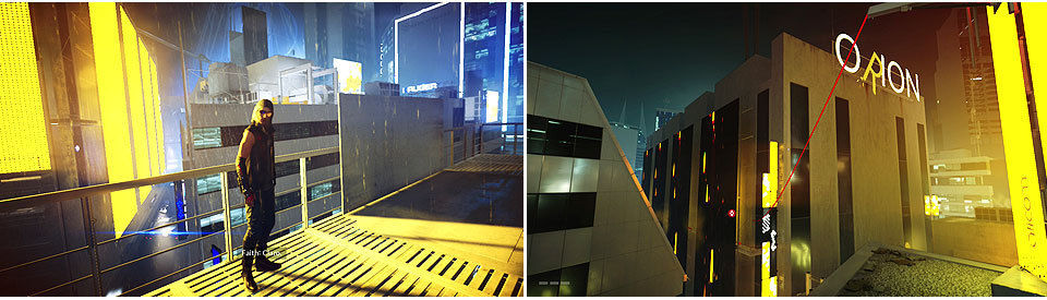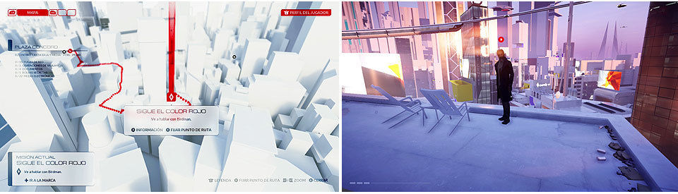 Ahora ya podemos activar la visión de runner que nos marca un trayecto hacia el objetivo pero no necesariamente el más rápido, continuamos hasta llegar a una tirolina que nos lleva hasta el edificio Orion, donde nos espera Icarus.