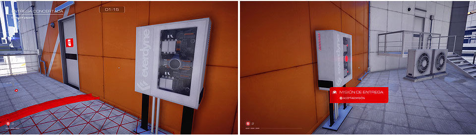 Entrega la información en el punto concertado antes de que se acabe el tiempo. En estas misiones tenemos que recoger un paquete en un punto de recogida y llevarlo hasta otro.