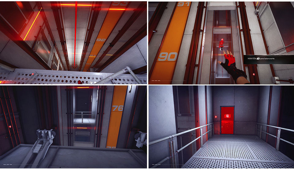 Tras recoger los coleccionables continuamos hasta llegar al hueco del ascensor, descendemos por las tuberías y llegar a una zona para usar el gancho MAG, nuevamente otra tubería y con un salto de pared nos enganchamos abajo del ascensor. Cuando este se pare saltamos a la pasarela y continuamos bajando por las tuberías, hasta llegar a otro ascensor que al bajar, nos deja al lado de una puerta, continuamos por aquí.