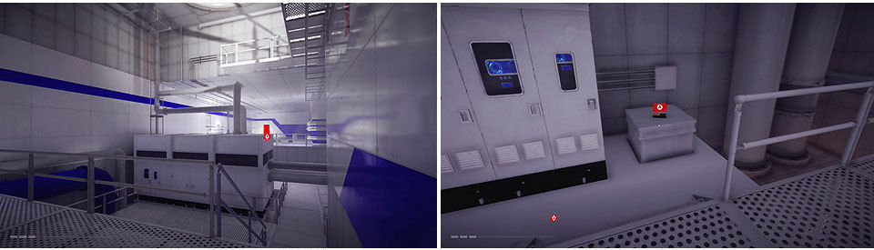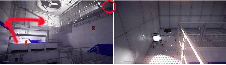 Lo primero es comenzar a bajar, nos deslizamos por la cornisa y usamos la rejilla de ventilación para entrar en el edificio. Según salgamos del conducto, llegaremos a una sala donde podemos encontrar 2 coleccionables.