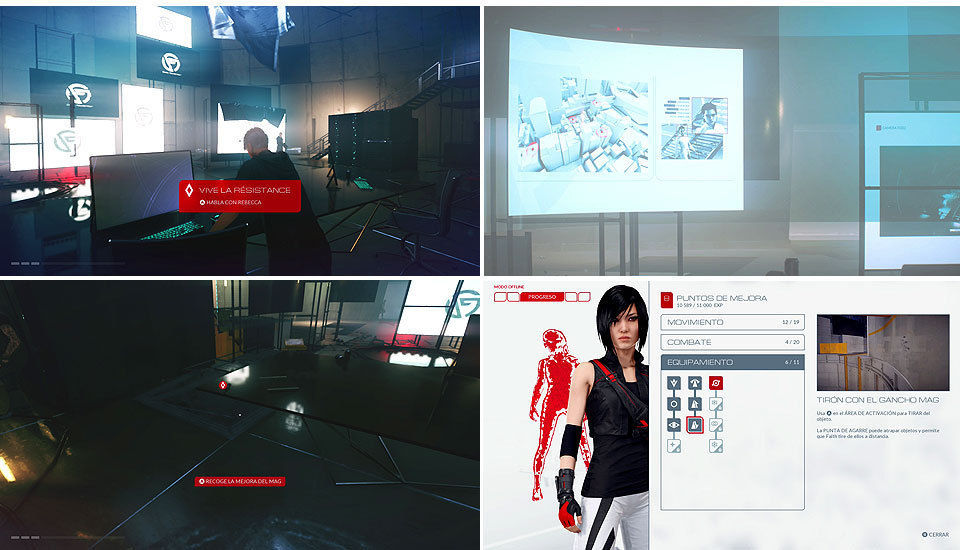Usando el Gancho Mag tiramos unos tablones para poder ascender por el edificio. Acercándonos al primer terminal, simplemente seguimos la visión runner y cuidado con los saltos, llegamos hasta una zona donde tenemos que pasar agachados. Justo al salir estarán los Drones esperándonos, aquí hay que correr lo máximo posible para evitar que nos maten hasta llegar a unos tablones por los que podemos subir al piso de arriba.