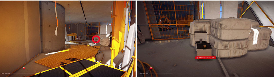 Al bajar por el ascensor, tenemos 3 coleccionables para recoger rápidamente, un chip de control, una grabación y una bolsa secreta arriba del todo que podéis ver en la imagen, pertenecen a los túneles de OmniStat y no a la misión.