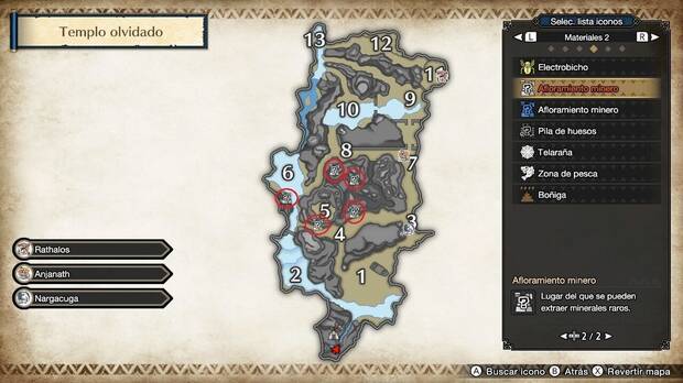 Puedes localizar fácilmente todos los afloramientos mineros del Templo olvidado siguiendo estos pasos:
