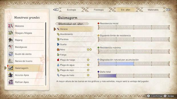 Estas son las vulnerabilidades y resistencias de estados alterados de Gaismagorm (para más detalles puedes consultar la imagen):