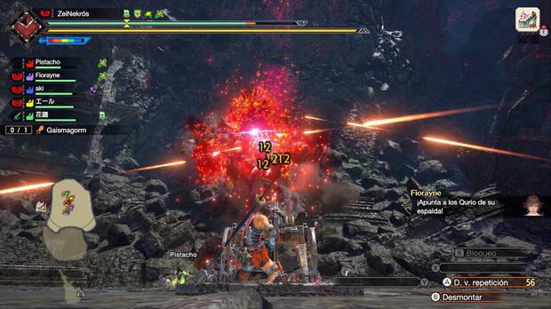 - Ataque extremadamente peligroso: en ciertos momentos Gaismagorm empezará a aspirar con su boca a todos los cazadores y luego formará una explosión de gran daño que puede fulminarte. Para esquivar este movimiento tienes que fijarte en los avisos de Fiorayne, quien te dirá que está a punto de empezar a aspirar, y rápidamente colocarte detrás de alguna de las rocas que aparecen en el escenario.