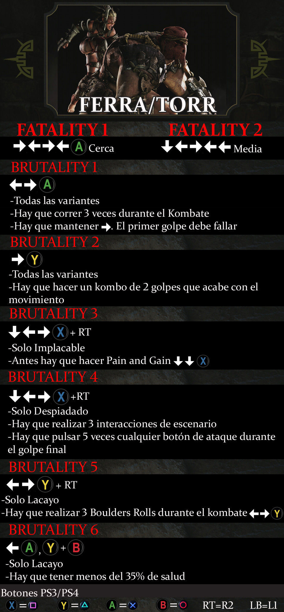 Todas las técnicas, movimientos, brutalities y fatalities de Ferra / Torr en Mortal Kombat X.