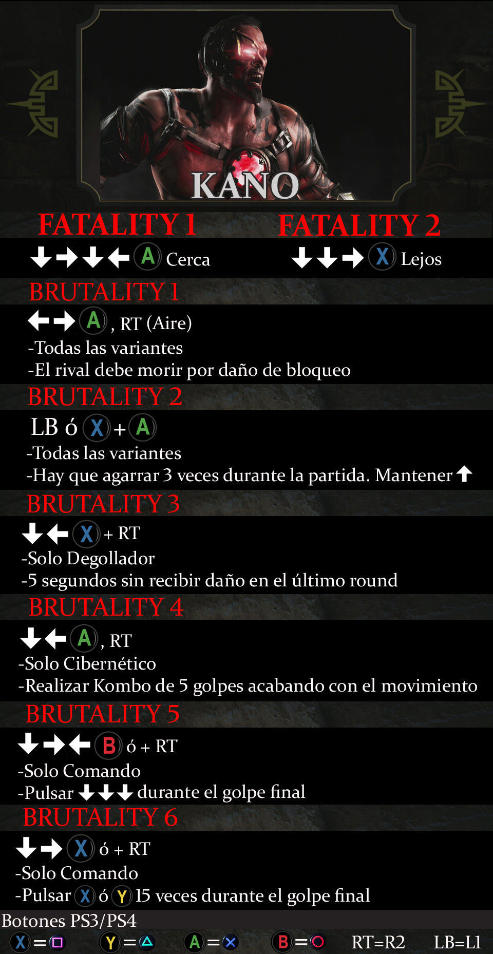 Todas las técnicas, movimientos, brutalities y fatalities de Kano en Mortal Kombat X.