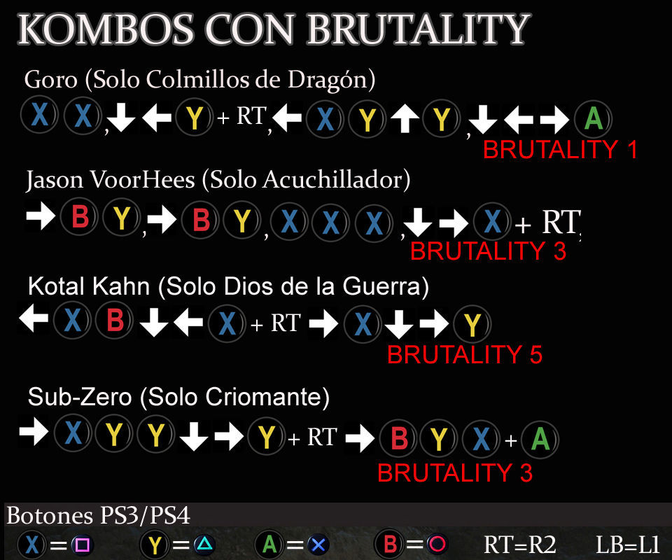 Muchos de ellos se pueden realizar en Kombo, así que cuando mejor desarrollemos Kombos con estos Brutalities, podremos asegurarnos la victoria cuando al rival le quede todavía un buen porcentaje de vida.