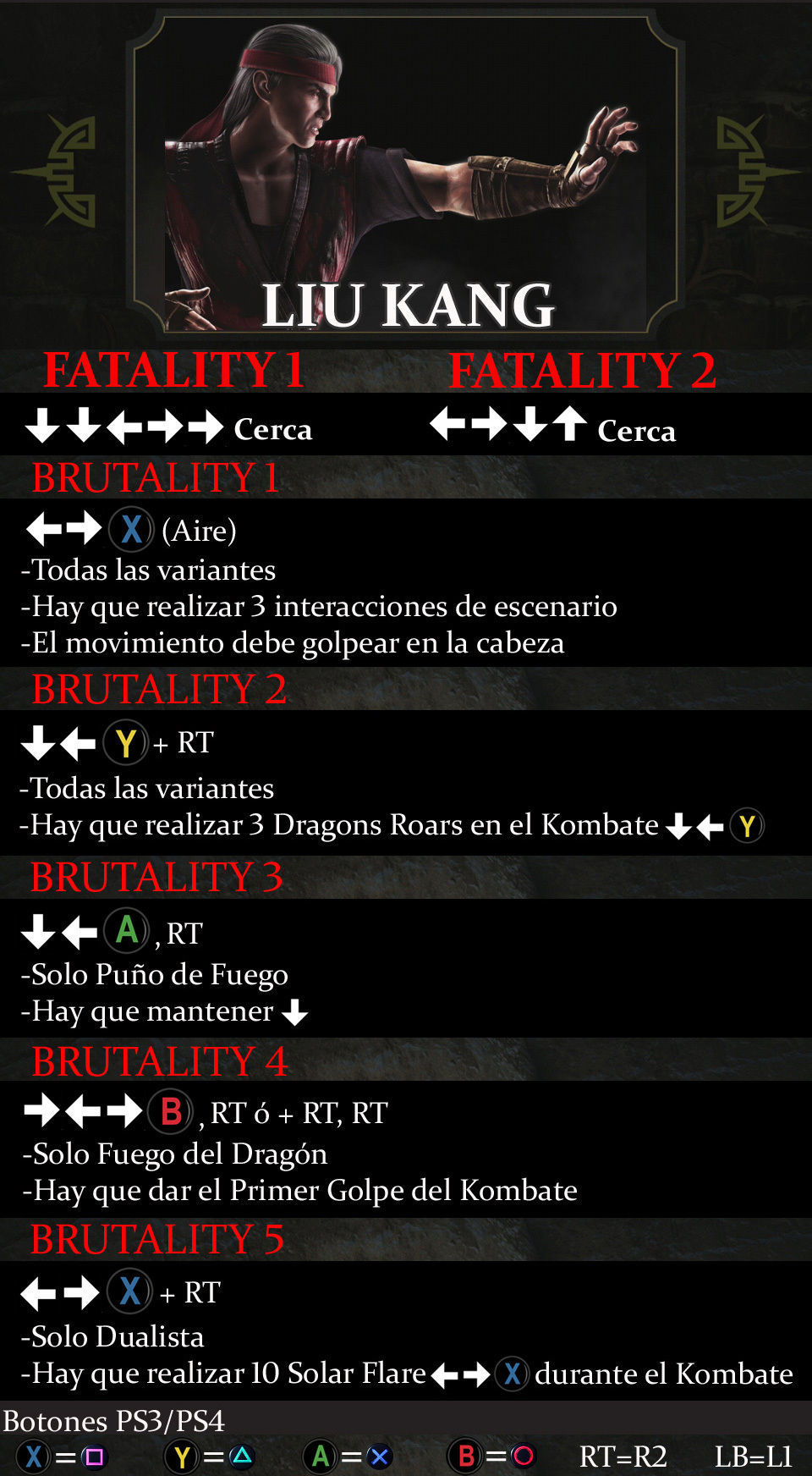 Todas las técnicas, movimientos, brutalities y fatalities de Liu Kang en Mortal Kombat X.