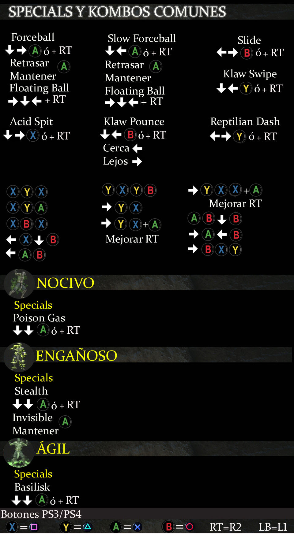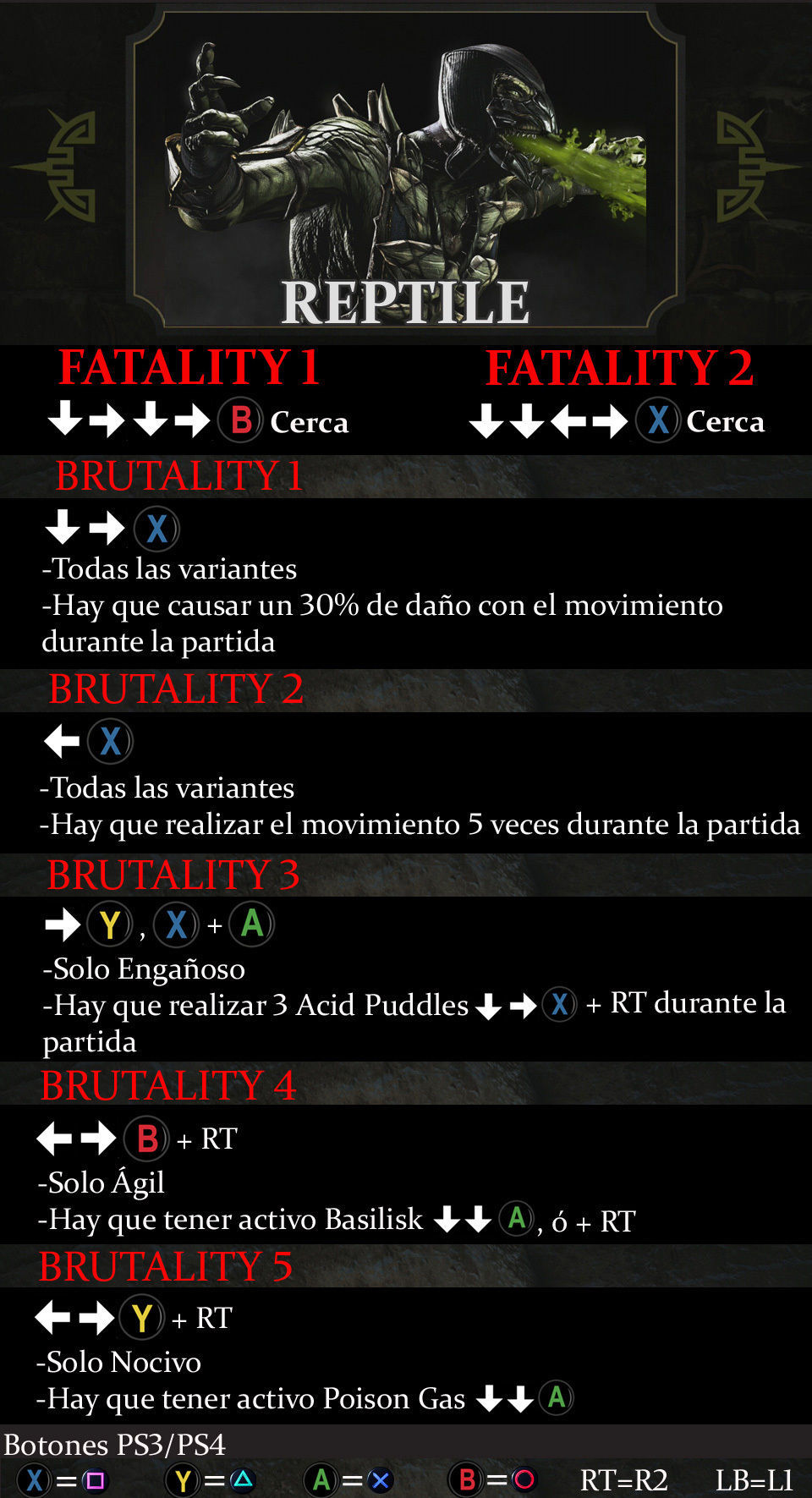 Todas las técnicas, movimientos, brutalities y fatalities de Reptile en Mortal Kombat X.