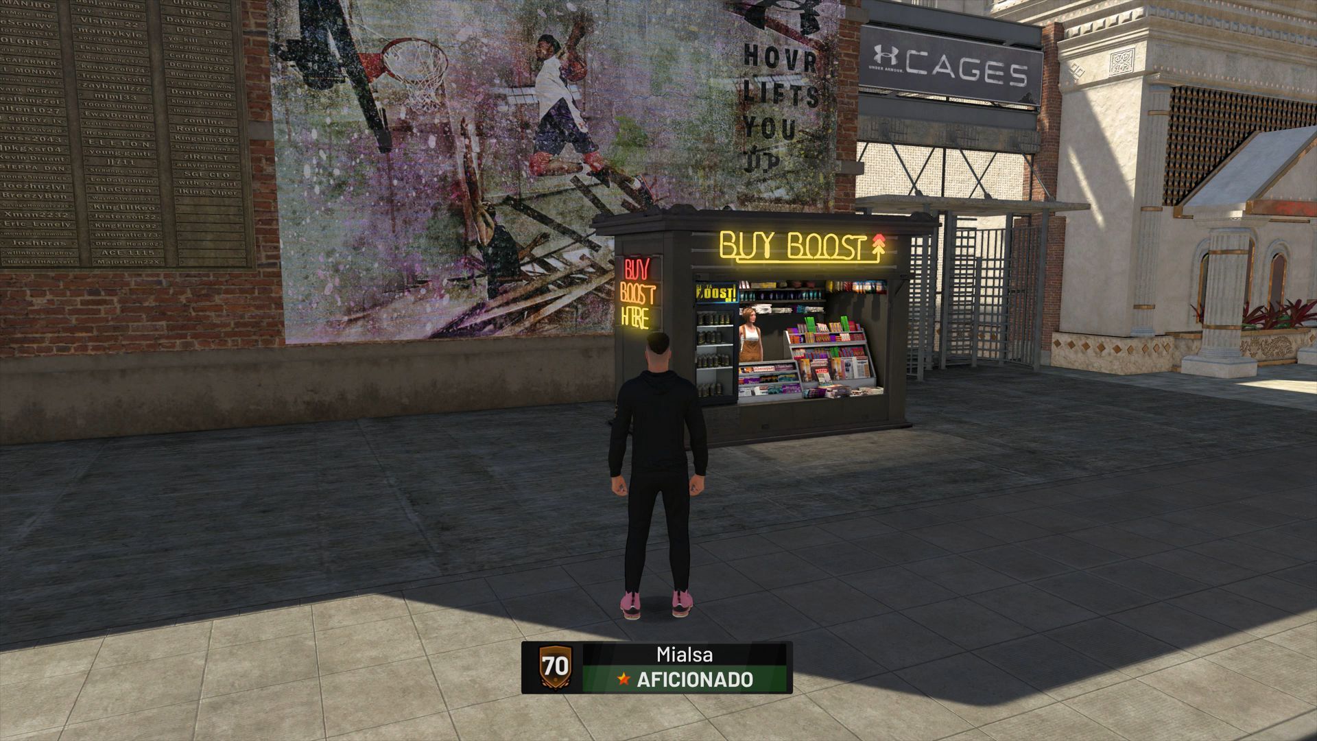 En este stand (situado a la derecha de Pro-Am) podremos comprar mejoras temporales que aumentan las capacidades de Mi Jugador durante una determinada cantidad de partidos.