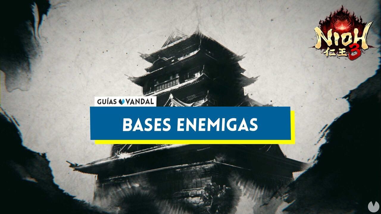 Entre los numerosos lugares de interés de Nioh 3 nos encontramos con las Bases enemigas. En estas ubicaciones te encontrarás con una determinada cantidad de enemigos que debes eliminar para despejar la base. Las bases se pueden componer de enemigos humanos, yokai o una mezcla de ellos. En cada base habrá un cofre de recompensa, que puedes ser un cofre menor o uno de los especiales; y en ocasiones santuarios y kodama que estarán bloqueados hasta despejar la base.