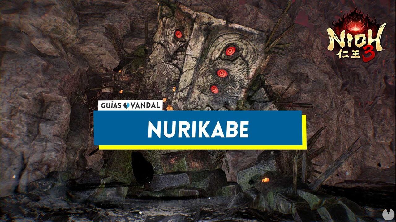 Entre los muchos nigitama que se pueden encontrar en Nioh 3 nos podemos encontrar con los nurikabe. Estos nigitamas son unas criaturas que se camuflan con la forma de muros, pero cuya presencia queda al descubierto cuando te encuentras una pared con ojos como la que hay bajo estas líneas. Estos bichos esconden rutas ocultas que suelen llevar a fuentes termales, entre otros coleccionables.