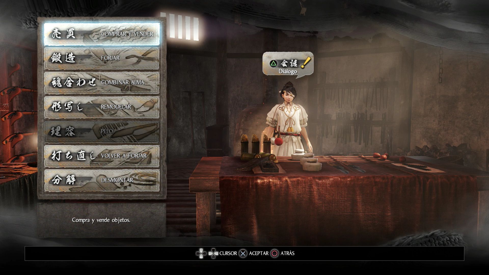 Comprar y vender: Esta opción comprar armas, armaduras, objetos varios, objetos especiales. La opción de vender te permite vender cualquier tipo de objeto, aunque no lo tenga el herrero a la venta. Si vendes algo por error podrás comprárselo de nuevo al herrero en la opción de comprar.