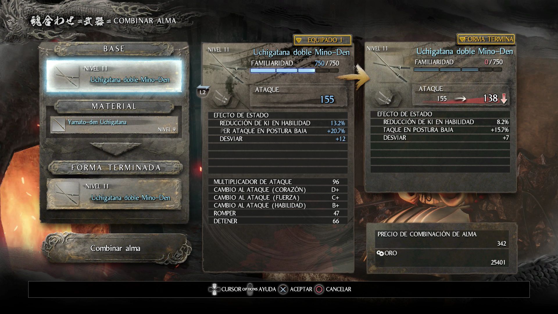 Combinar alma: Esta opción te permite combinar el alma de dos armas o dos piezas de armadura para hacerla más poderosa. A la hora de combinar hay que tener en cuenta las propiedades de cada elemento que se va a combinar.