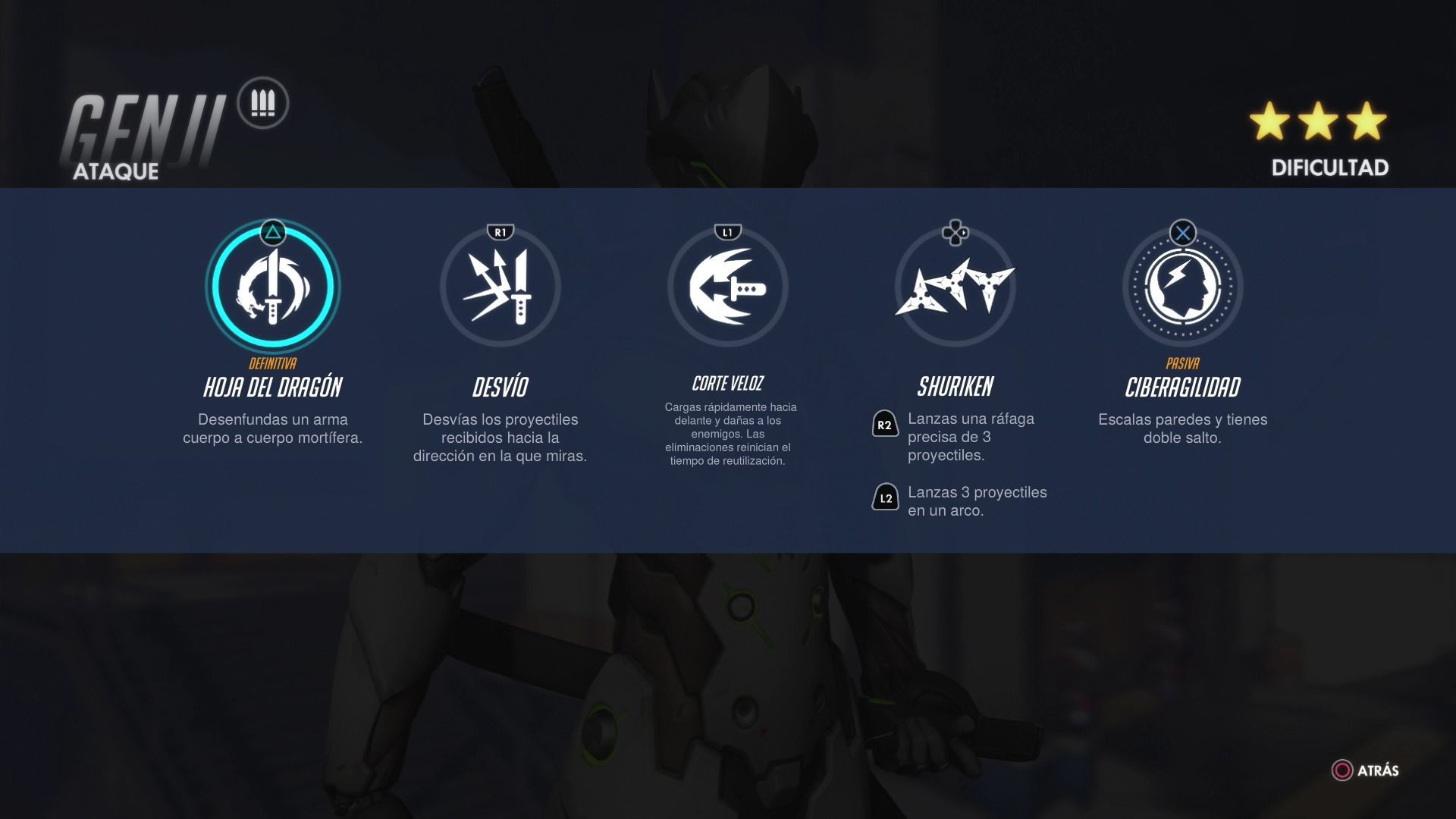 Genji puede resultar un personaje bastante extraño al principio, sobre todo por cómo funciona su arma principal. Su arma se basa en unos shuriken que lanza en tandas de tres y cuenta con un total de veinticuatro, cuando se queda sin ellos tarda un par de segundos en volver a tenerlos.
