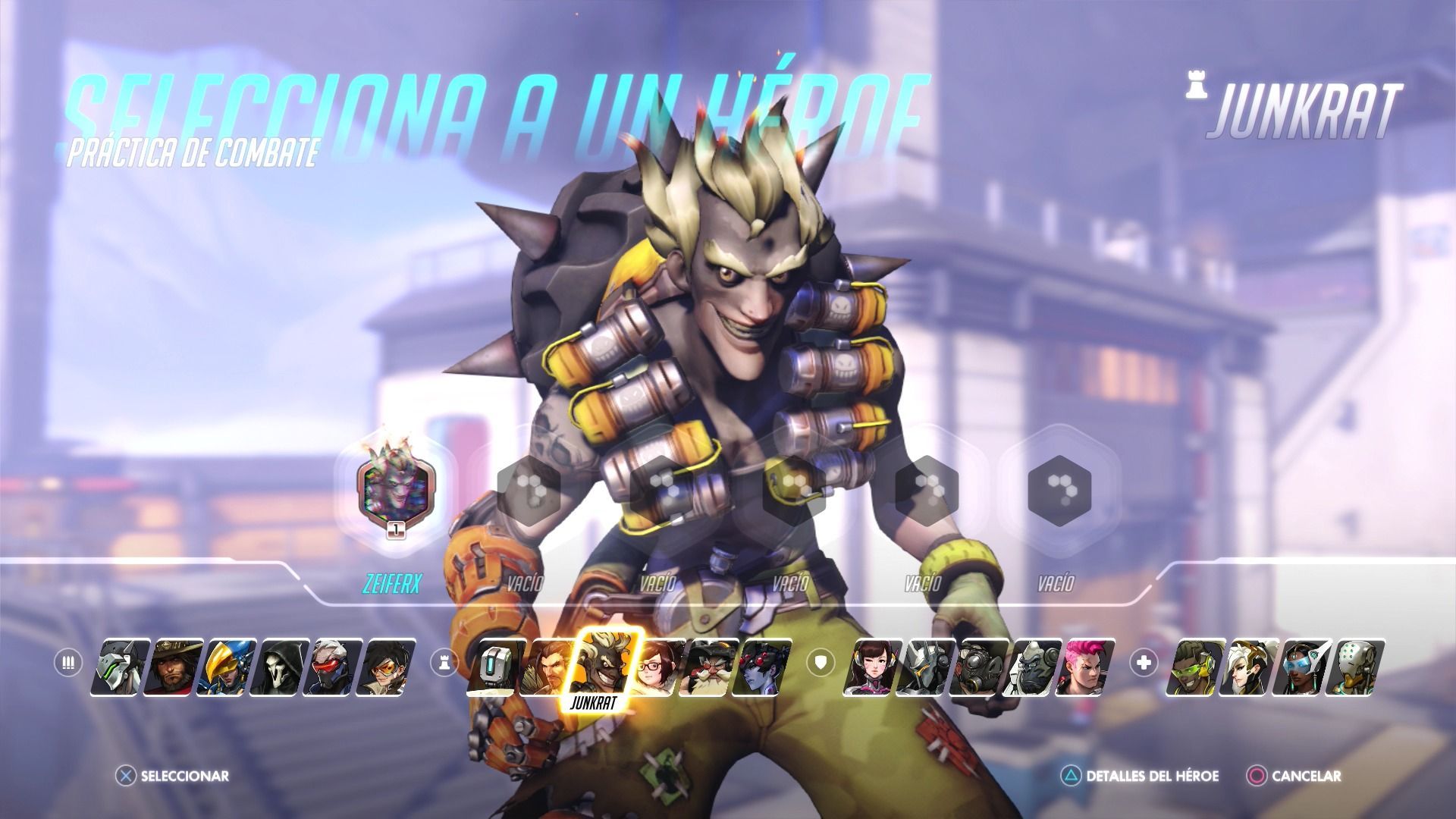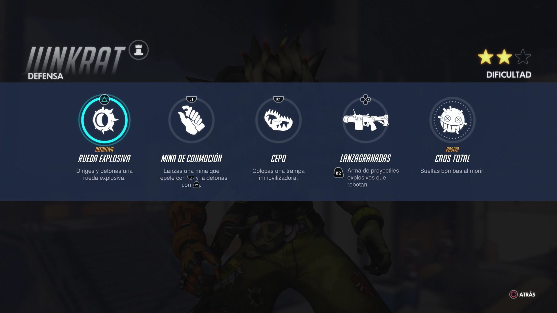 El arma de Junkrat consigue en una lanzagranadas que lanza proyectiles que rebotan pueden rebotar en cualquier superficie y que explotan pasados unos segundos. Es muy importante tener en cuenta que estos explosivos también te harán daño a ti si te alcanza la explosión. En el caos de impactar en un héroe explota al instante. Es un arma muy interesante que no cuesta mucho dominar y con la que podrás bombardear sin parar las entradas por las que intente llegar el enemigo para impedírselo.