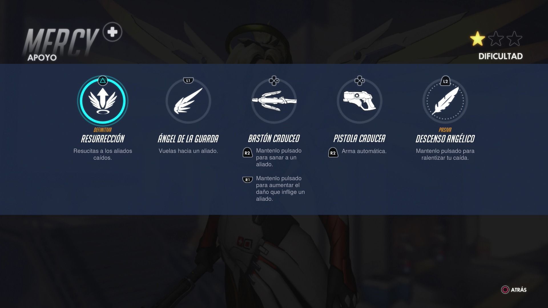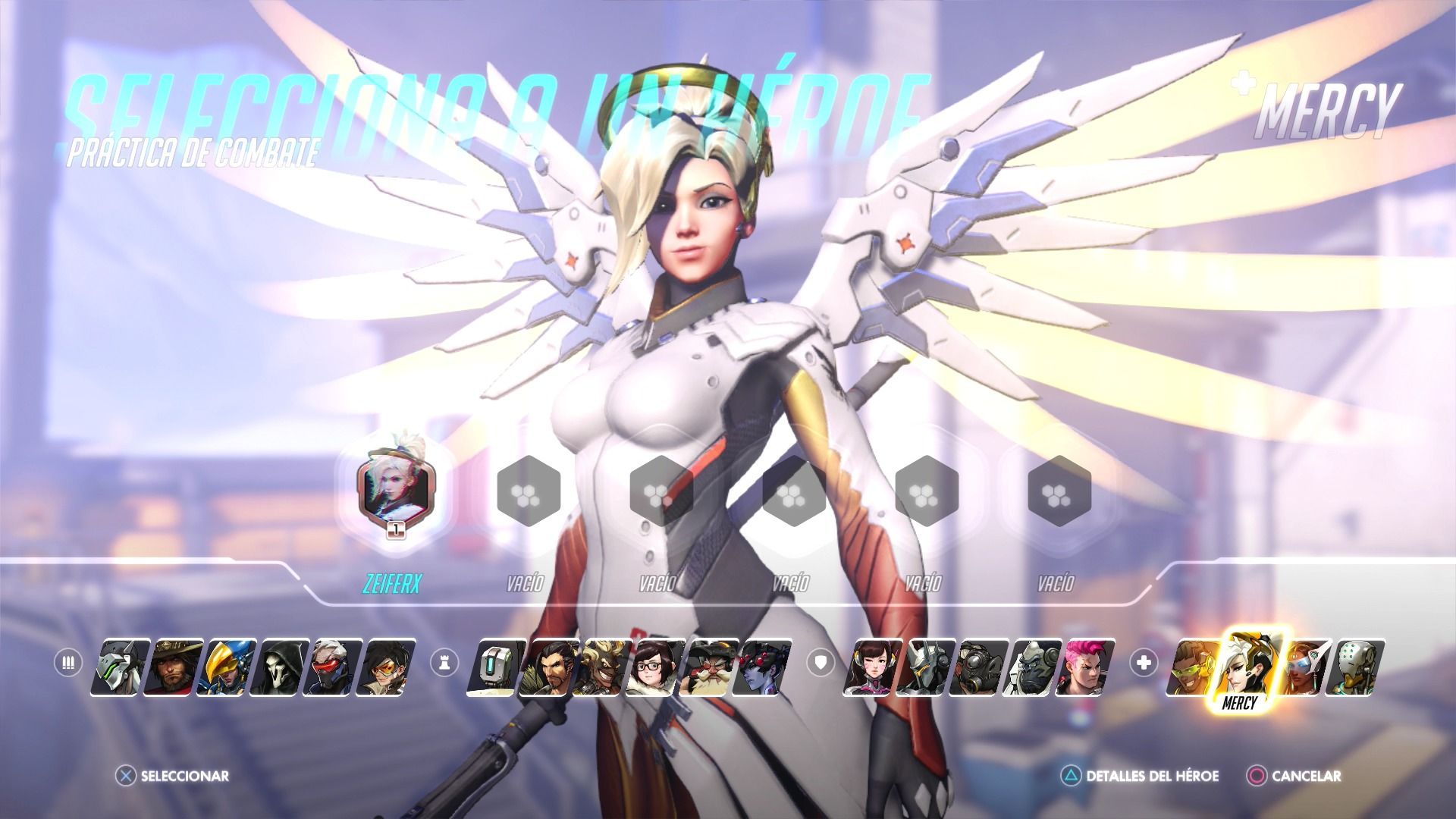 Si lo tuyo es jugar como personaje de Apoyo tu elección debería ser Mercy. Este personaje usa un bastón con el que puede curar o aumentar el daño de sus aliados.