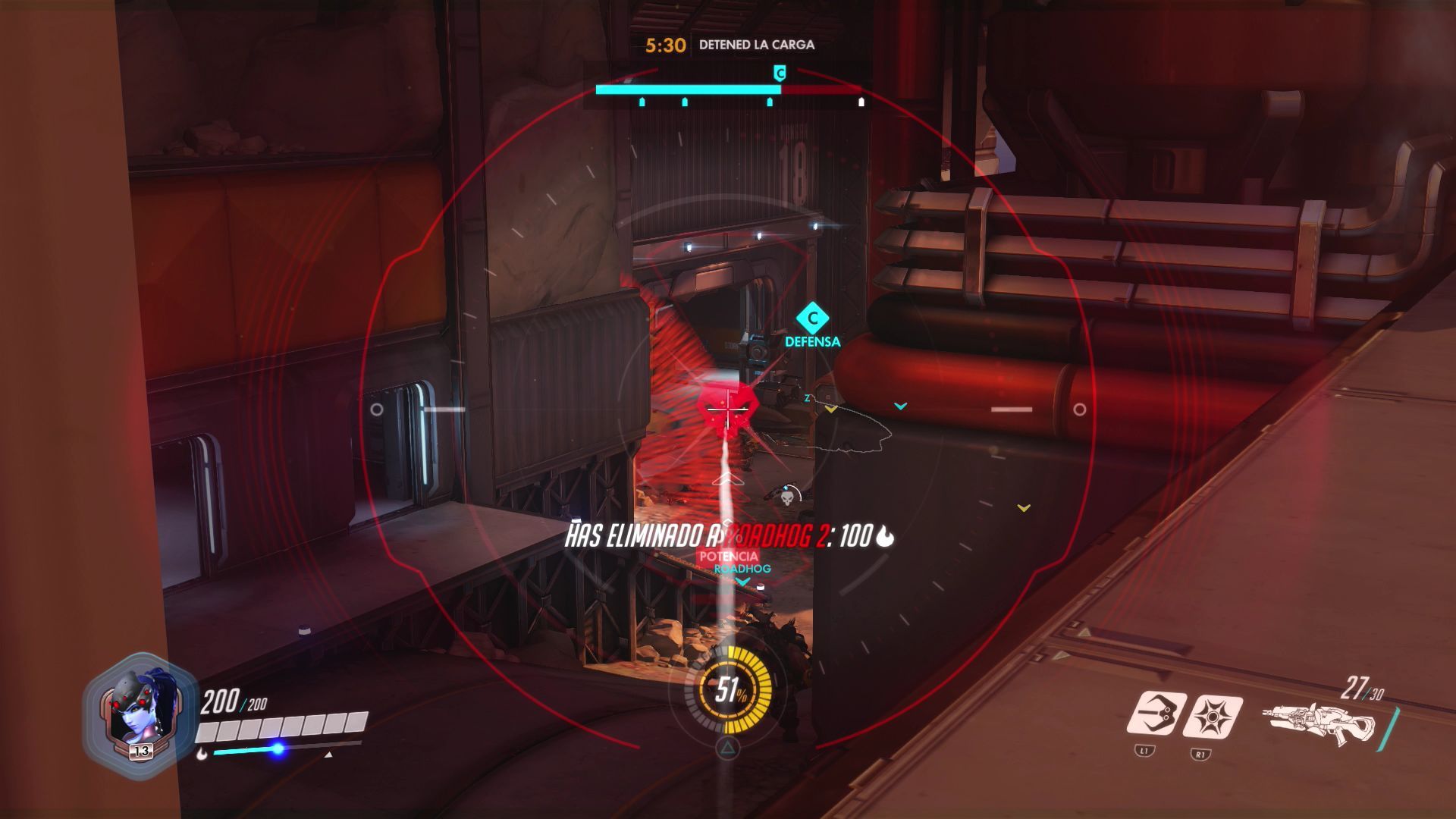 Esta última zona es de mucha más acción que las anteriores, Mei y Reinhardt ya no valen de mucho porque es un espacio mucho más abierto.