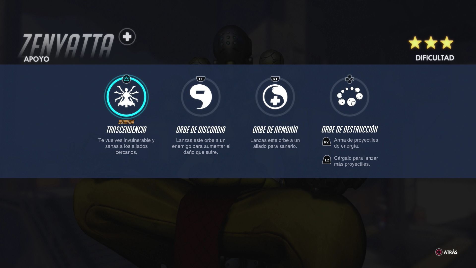 El arma principal de Zenyatta tiene dos ataques diferentes. En uno de ellos lanza una bola de energía hacia donde estés apuntando y en otro carga un par de bolas de energía que lanzará hacia donde estés apuntando. Cada una de las bolas de energía requiere una bala del cargador y además no podrás mantener el ataque preparado de forma infinita.