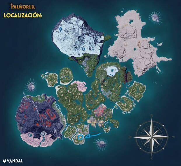 Aquí debajo te mostramos un mapa de Palworld con las zonas y hábitats habituales de Lunaris en las que podrás encontrar y capturar a este Pal: