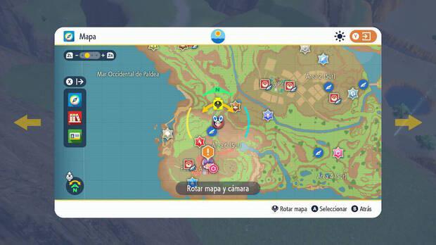 El Pokémon legendario Chien-Pao está relacionado con el grupo de estacas legendarias de color amarillo, que se pueden encontrar por los alrededores de las zonas del suroeste de Paldea. En el siguiente mapa general puedes consultar las posiciones de las estacas así como la localización de la puerta del "Santuario Glaceratio" donde se encuentra Chien-Pao encerrado.