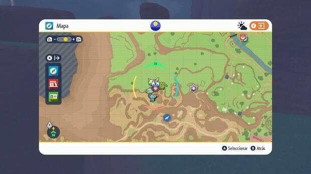 El Pokémon legendario Wo-Chien está relacionado con el grupo de estacas legendarias de color morado, que se pueden encontrar por los alrededores de las zonas del sureste de Paldea. En el siguiente mapa general puedes consultar las posiciones de las estacas así como la localización de la puerta del "Santuario Mustiarbor" donde se encuentra Wo-Chien encerrado.