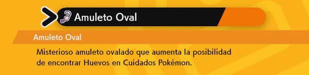 El Amuleto Oval es un objeto clave por lo tanto no hace falta que se lo equipes a ningún Pokémon o hagas nada en concreto. Simplemente a partir de ahora como lo tienes en tu Bolsa verás que en las guarderías se producen huevos a una velocidad mayor.