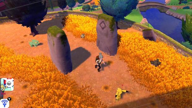 Antes de meterte en este campo más cercano, junto al muro de piedra, tienes un entrenador esperando para un combate.