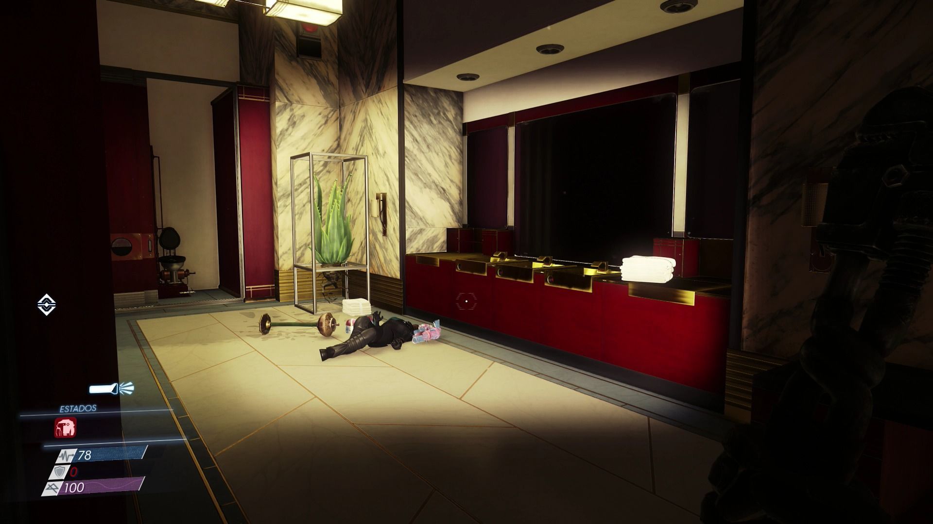 Dentro del despacho empieza por examina la caja fuerte de la librería para conseguir el Diseño de fabricación de munición para el cañón GLOO y un Kit de mejora de armas. Encima del escritorio verás una caja que contiene los Neuromods 3-5 y también la Tarjeta de acceso a Teleconferencias. En la mesa del fondo encontrarás la Tarjeta de acceso a la Suite de Morgan Yu, un Kit médico y varios objetos.