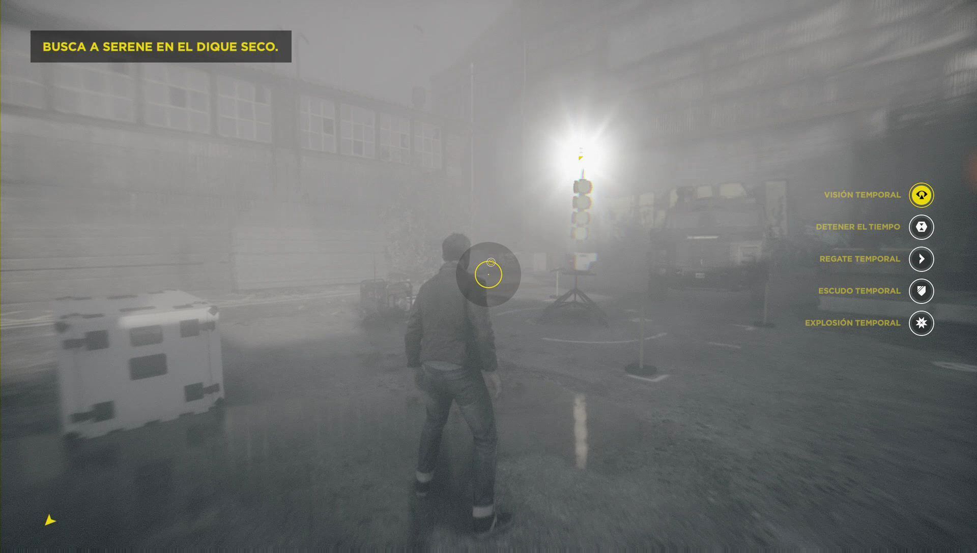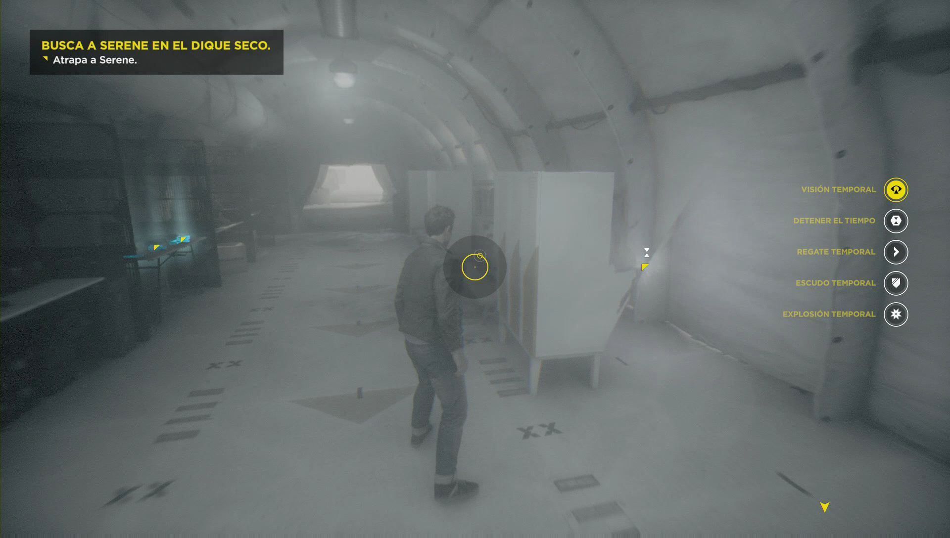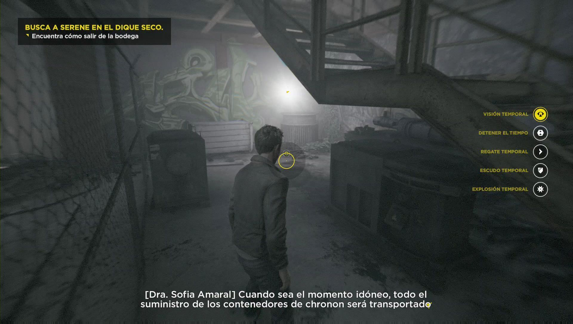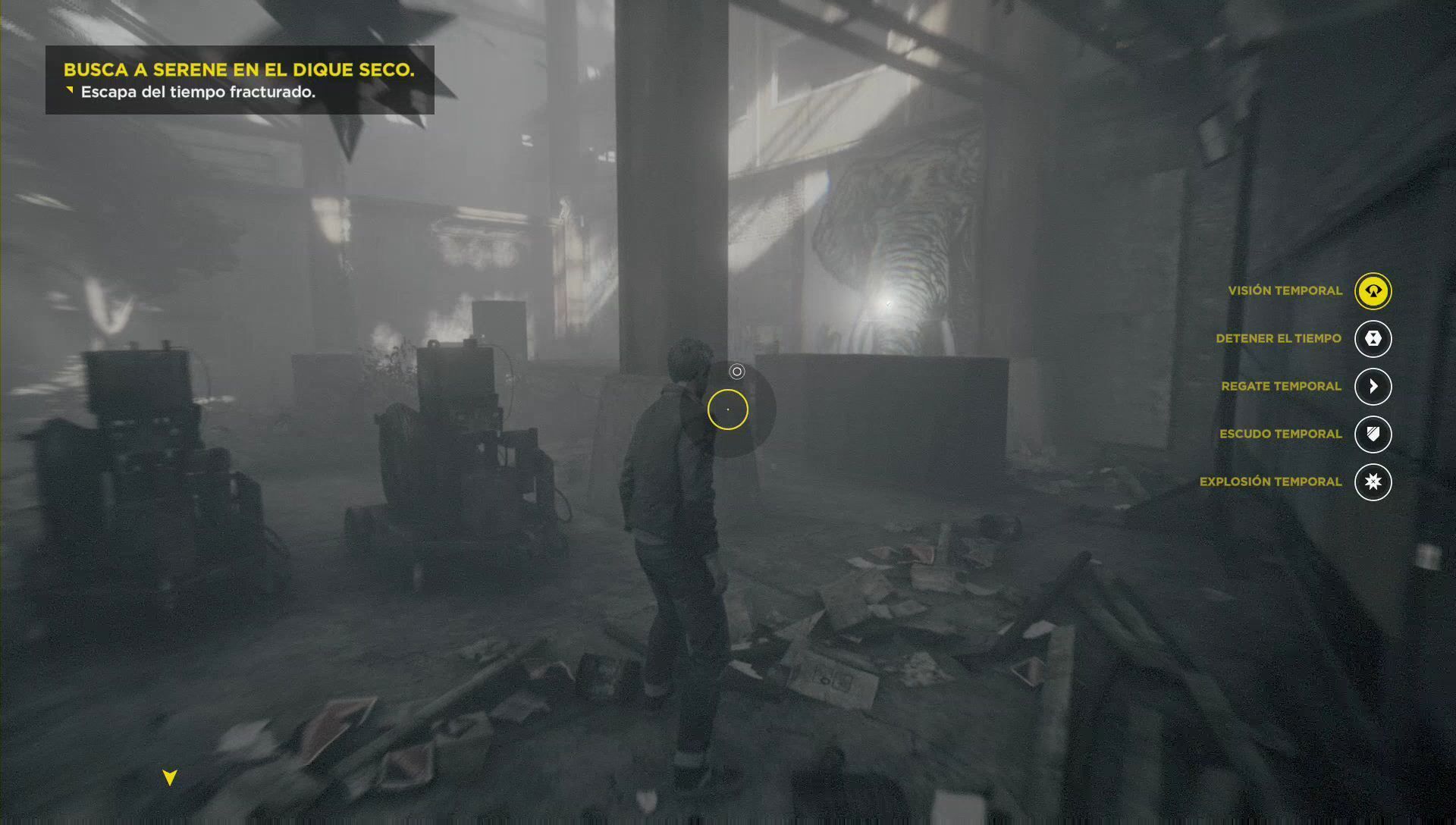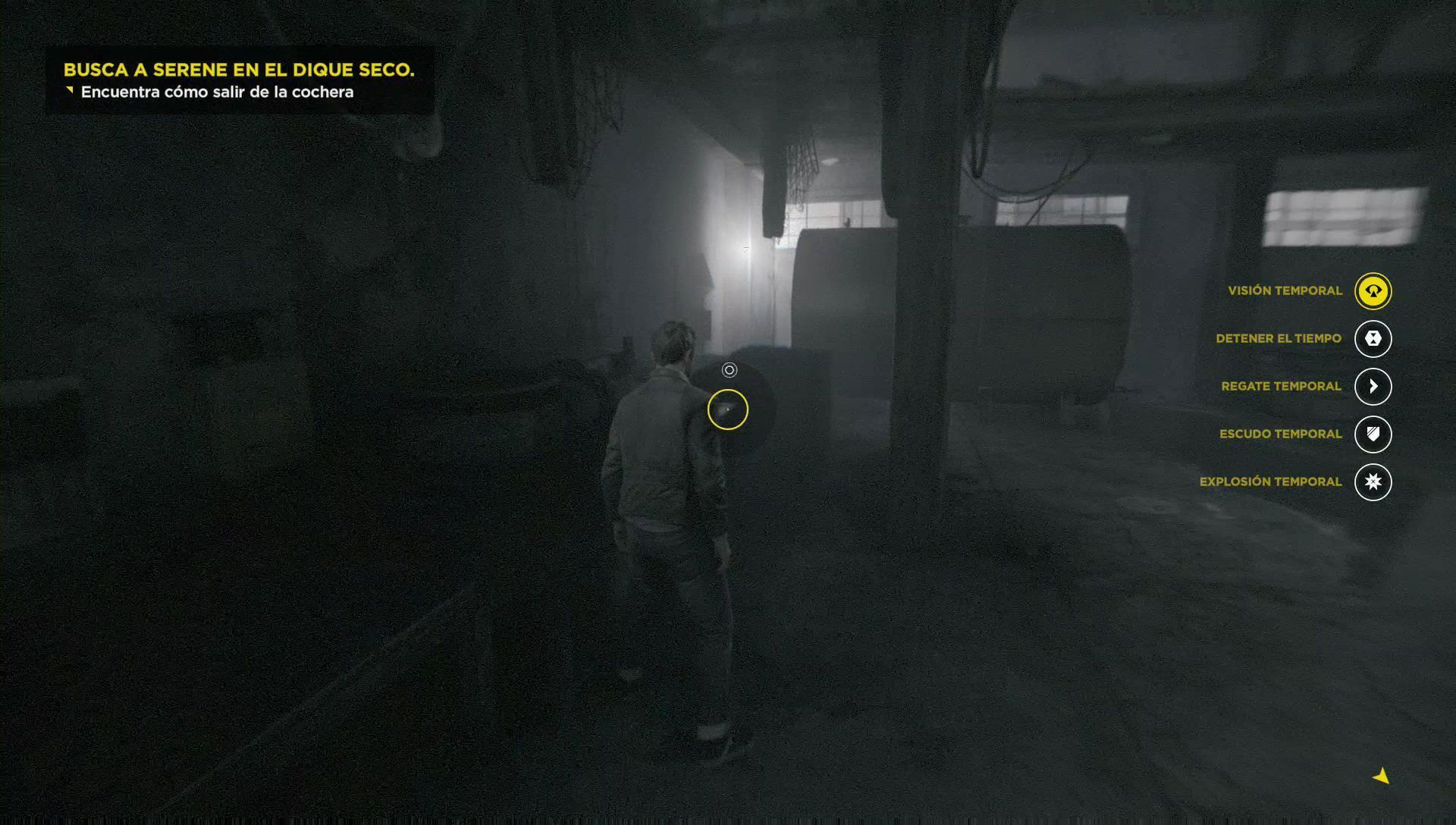 Al salir, verás una cinemática. Activa la visión temporal y manipula el tiempo de la estructura caída. Pasa por el túnel y calcula bien en el siguiente tramo, pues hay unos hierros cayendo intermitentemente (usa el sprint con LB). Avanza por el único camino posible valiéndote de estos recursos y, si te pierdes en algún momento, el color amarillo te marcará la dirección.