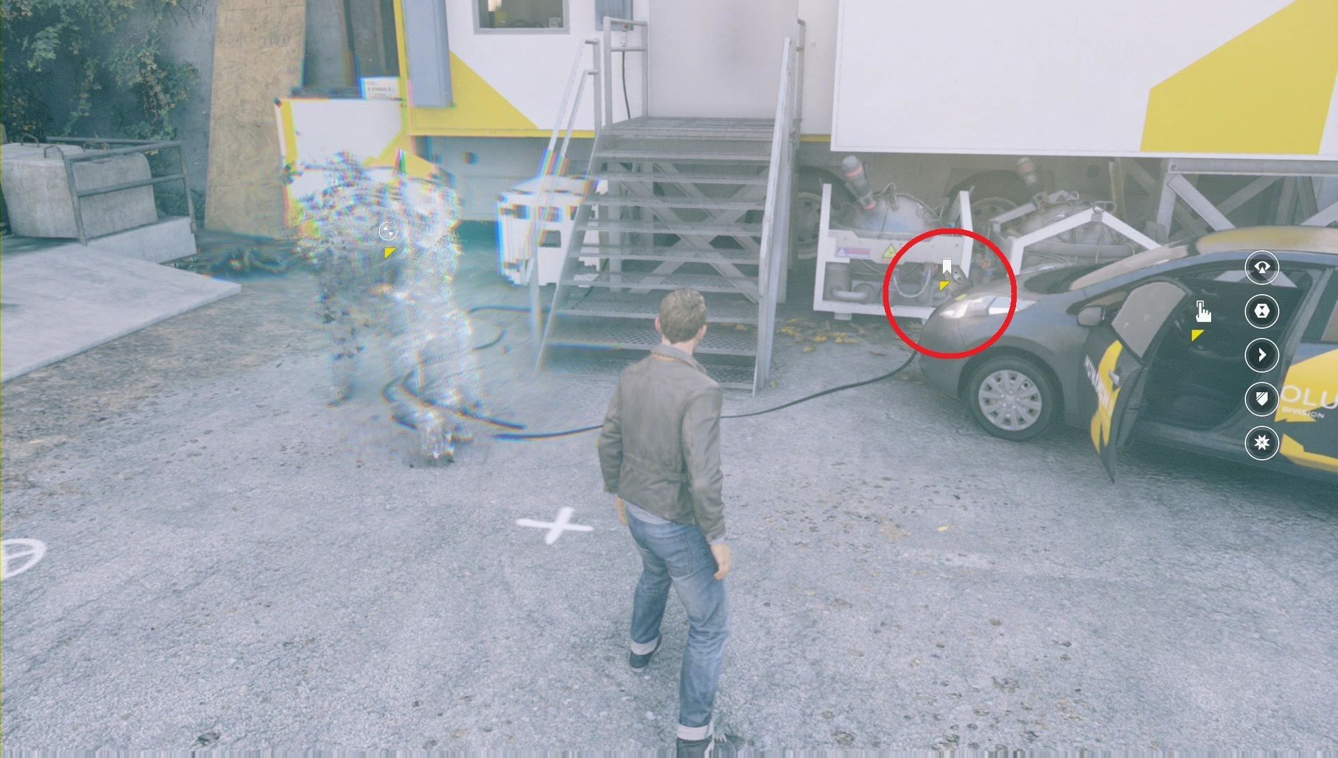Activa la visión temporal y verás que hay una grúa que se puede romper. Dispara, ponte encima y usa la habilidad de nuevo para permitir la manipulación temporal; esto te llevará arriba.