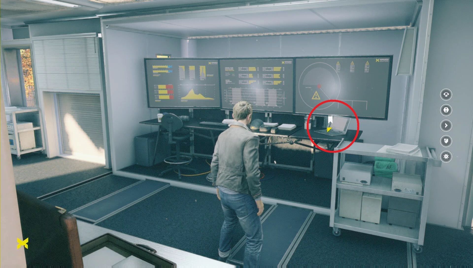 Sigue más allá hasta que estés dejando la zona cero. Al llegar a una sala cerrada, lee alerta de instruso en el portátil.