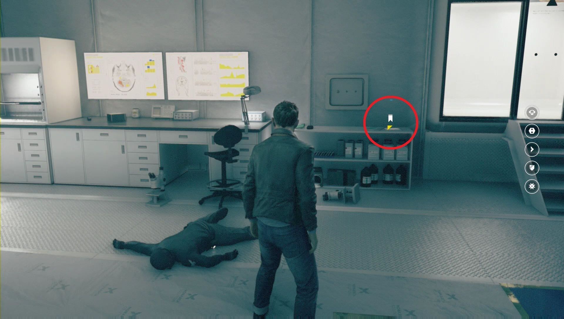 Empuja la estantería y avanza hasta llegar a una zona vigilada. Toca repartir plomo. Cuando ya esté todo despejado, examina el televisor del lugar de inicio para ver la presentación sobre el chronon de Sofia Amaral: