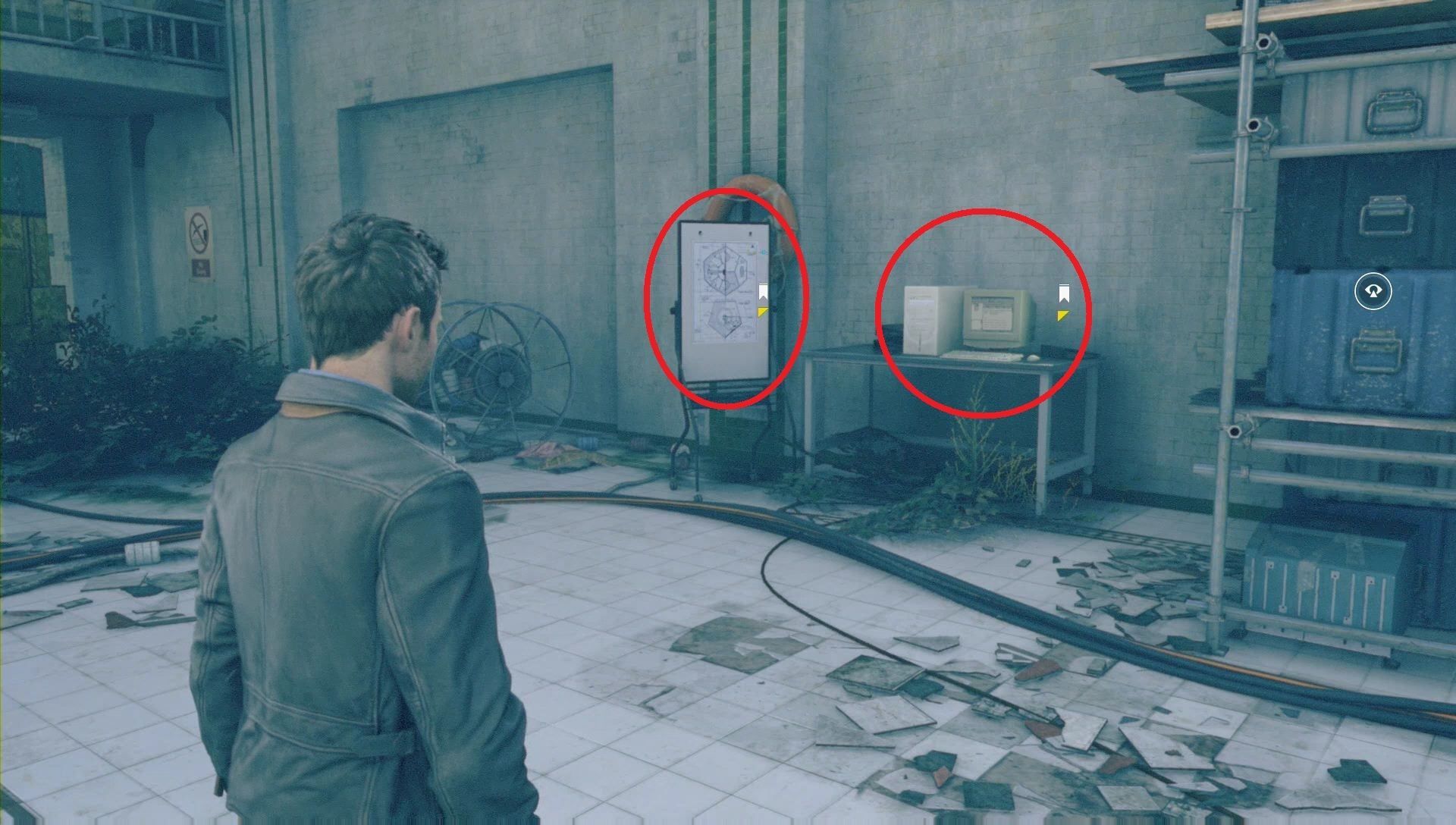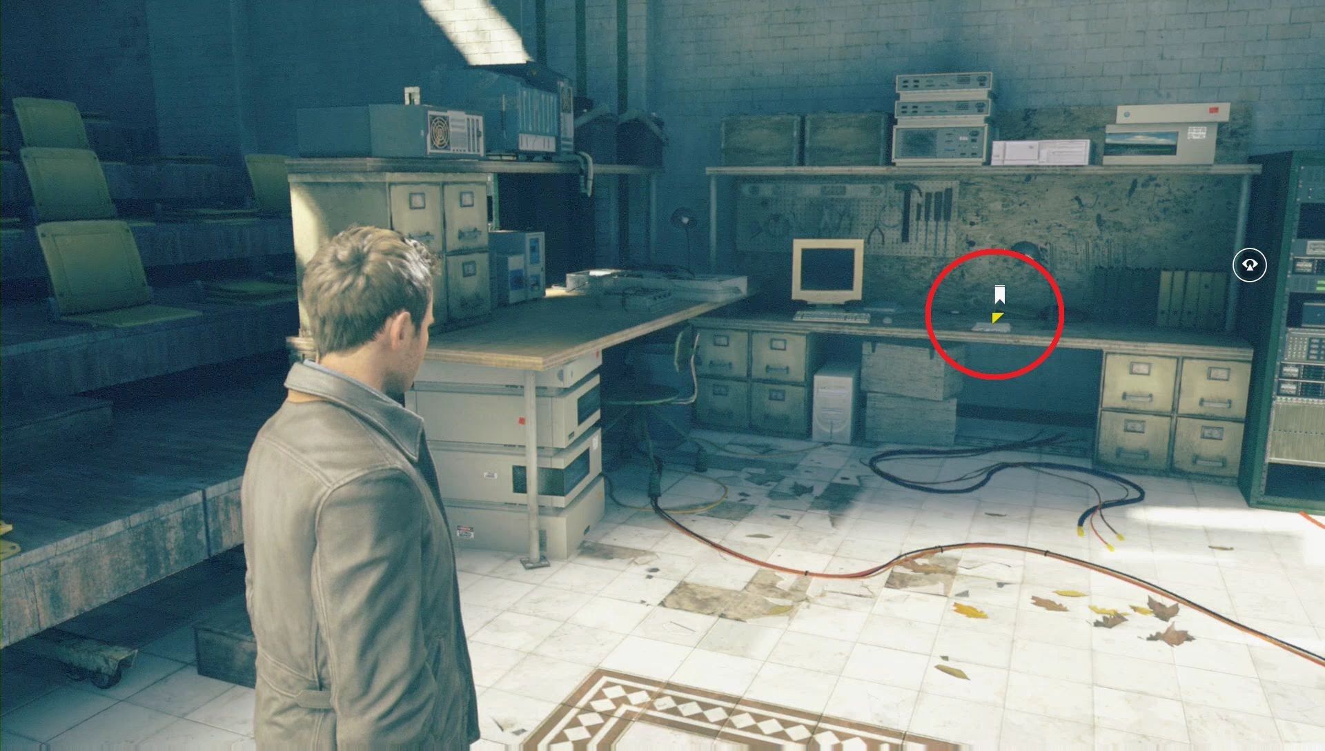 Sal al rellano, baja la escalera y abre la puerta principal. Dirígete a los vestuarios, espera a que Beth termine de ver el vídeo y ayúdala a abrir la puerta bloqueada. Sigue los cables hasta llegar a la sala de empleados, donde te espera una fuente de chronon.