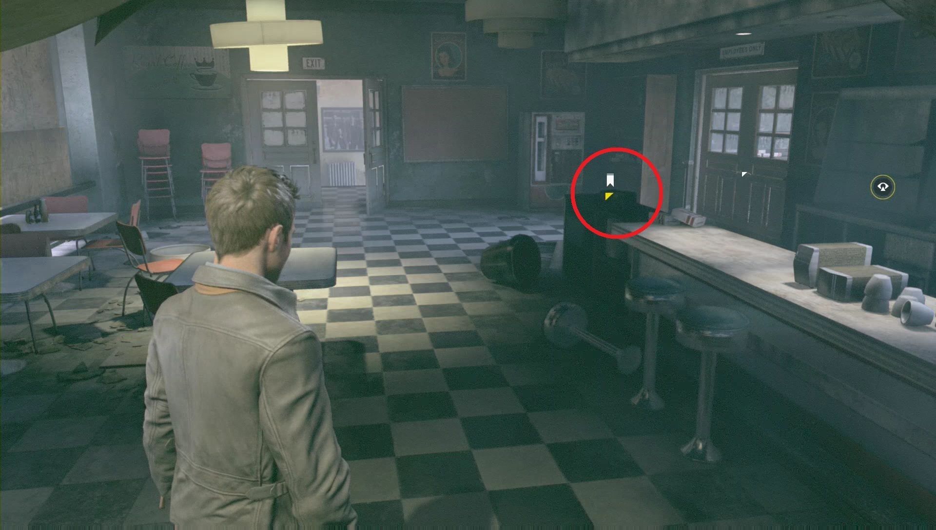 Avanza un poco y déjate caer por el agujero del suelo. Llegarás a la cafetería y podrás ver un eco del pasado.