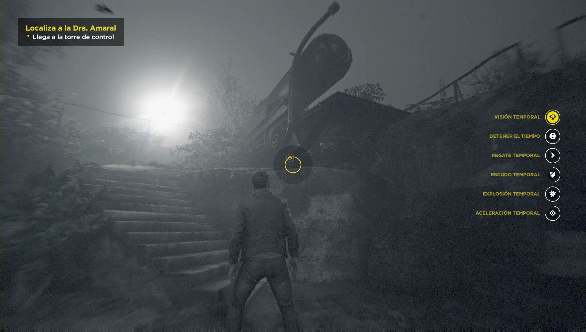 Vuelve sobre tus pasos, dirígete al lado opuesto y baja la escalera. Bajo la gran antena tienes otra fuente de chronon.