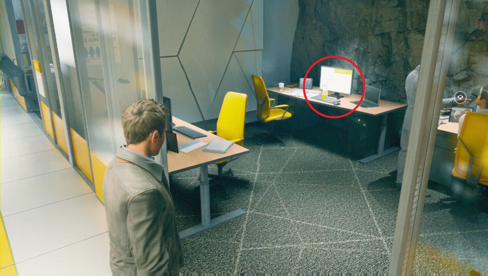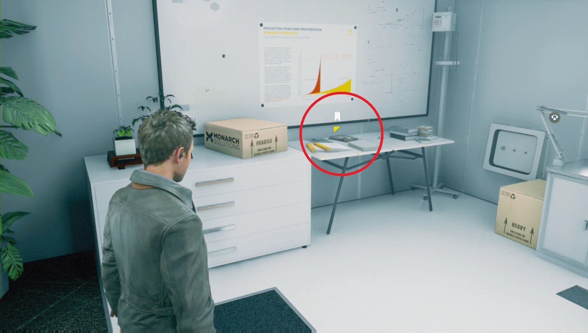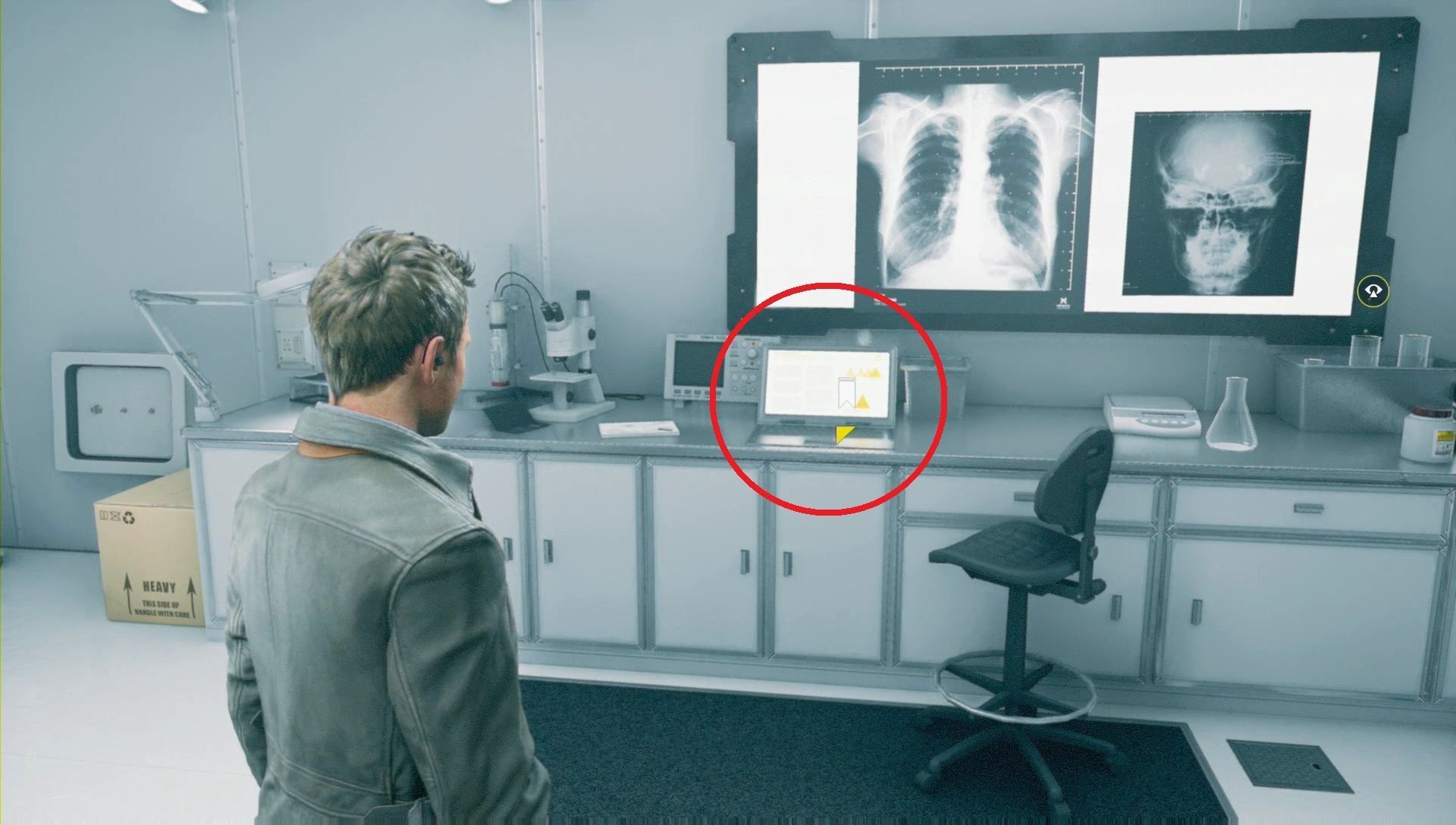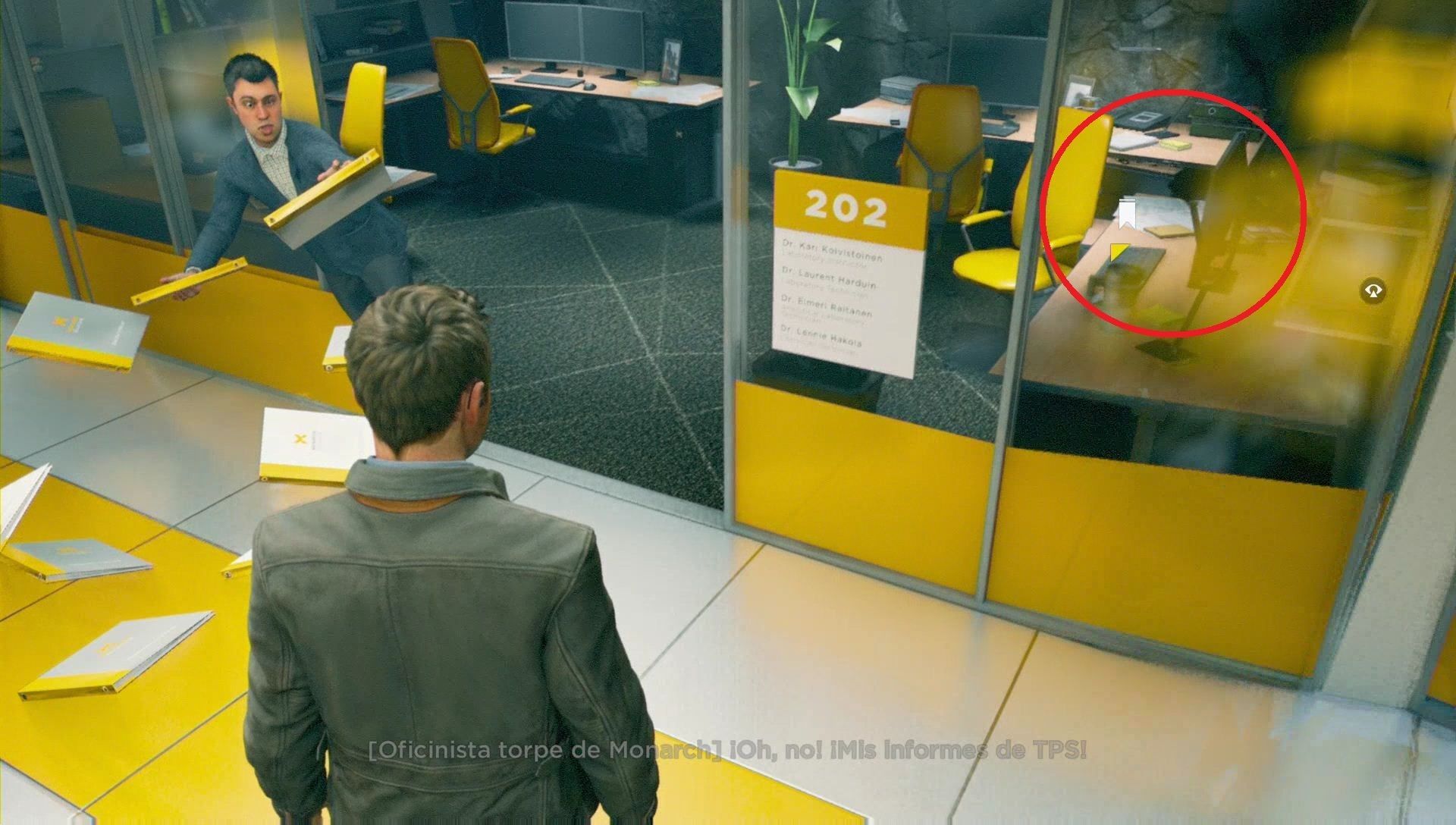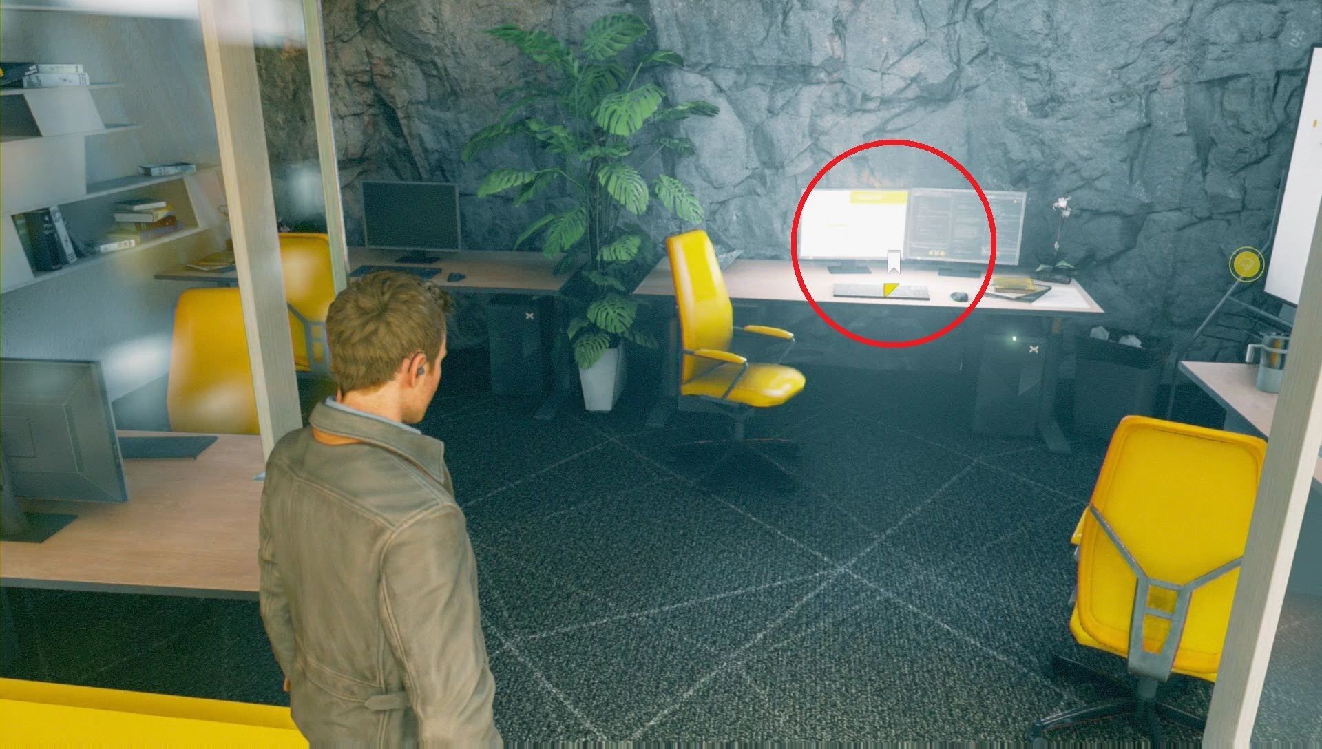 En el último despacho no hay nada, así que da la vuelta y regresa al inicio para bajar las escaleras hasta abajo de todo. En el primer despacho de aquí, examina el ordenador para ver La máquina del tiempo.
