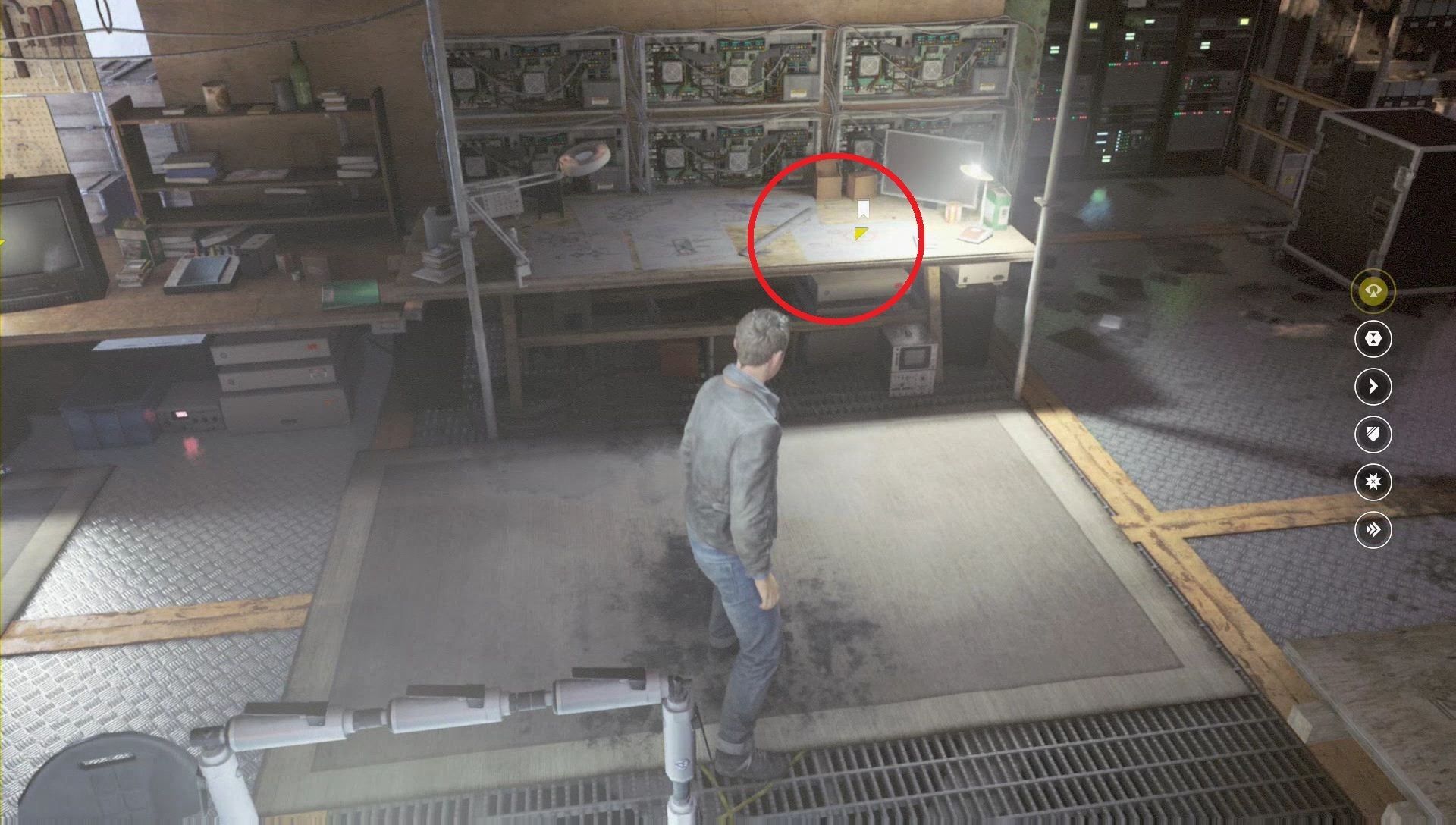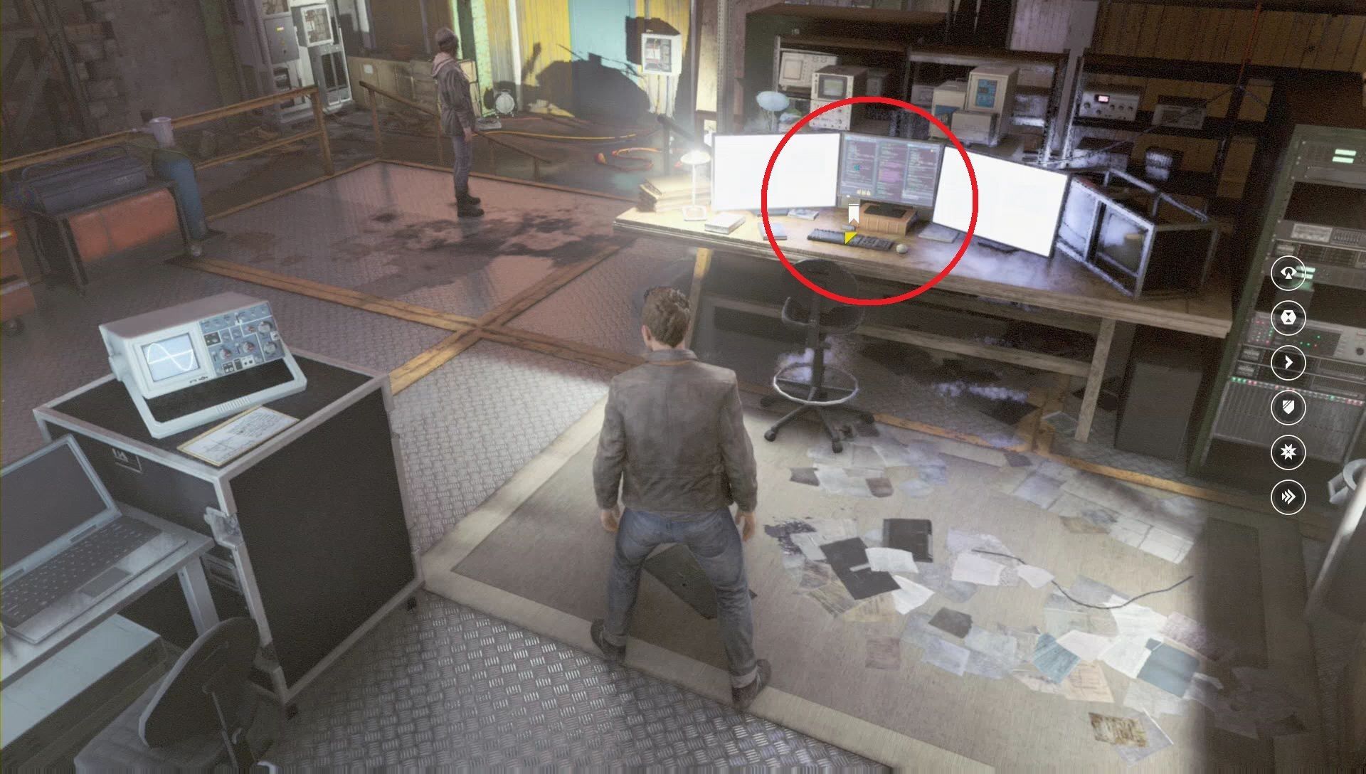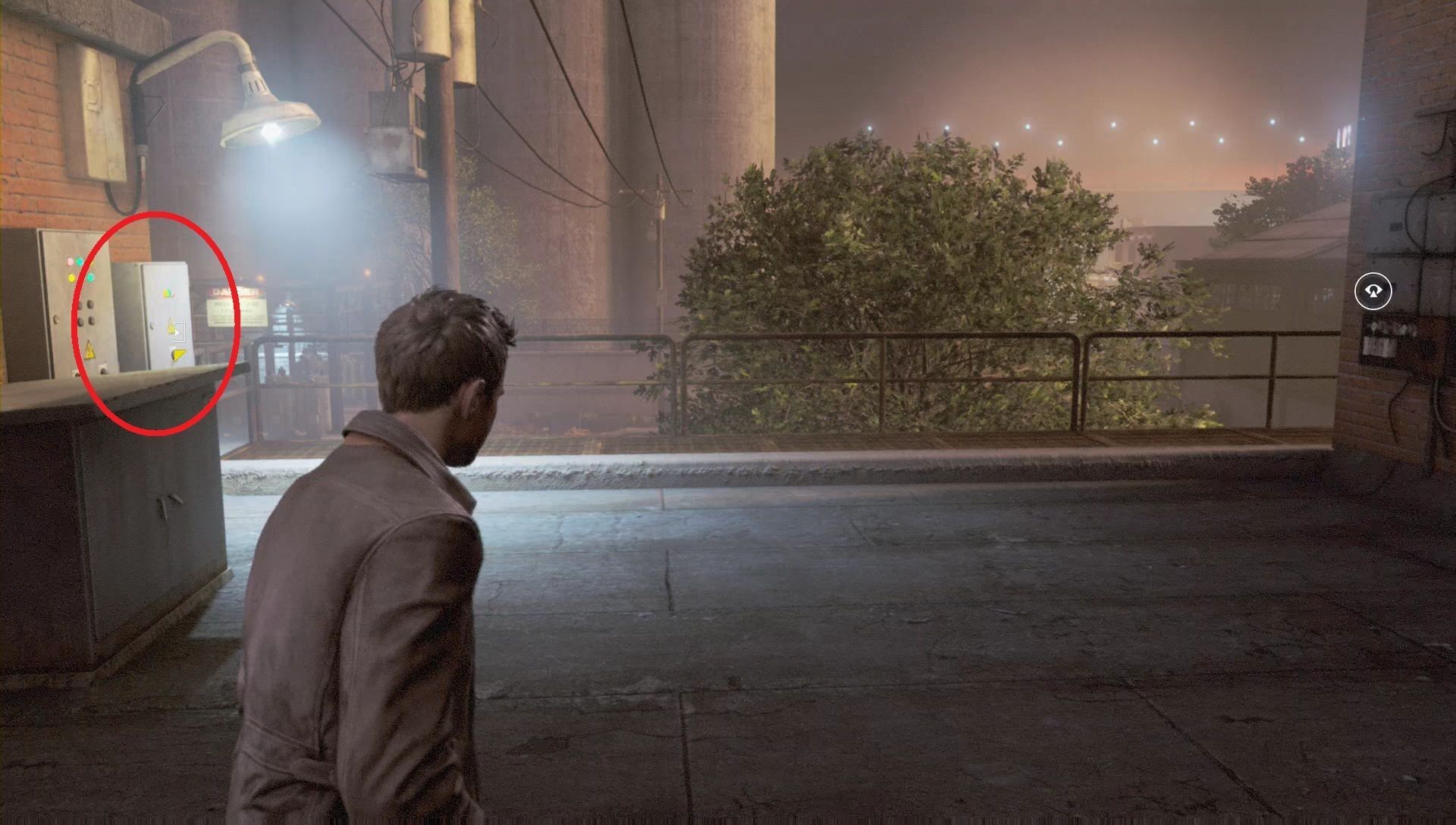 Anda por la terraza, cruza el puentecillo y busca una caja de fusibles con la que interactuar; esto desbloqueará la última onda cuántica.