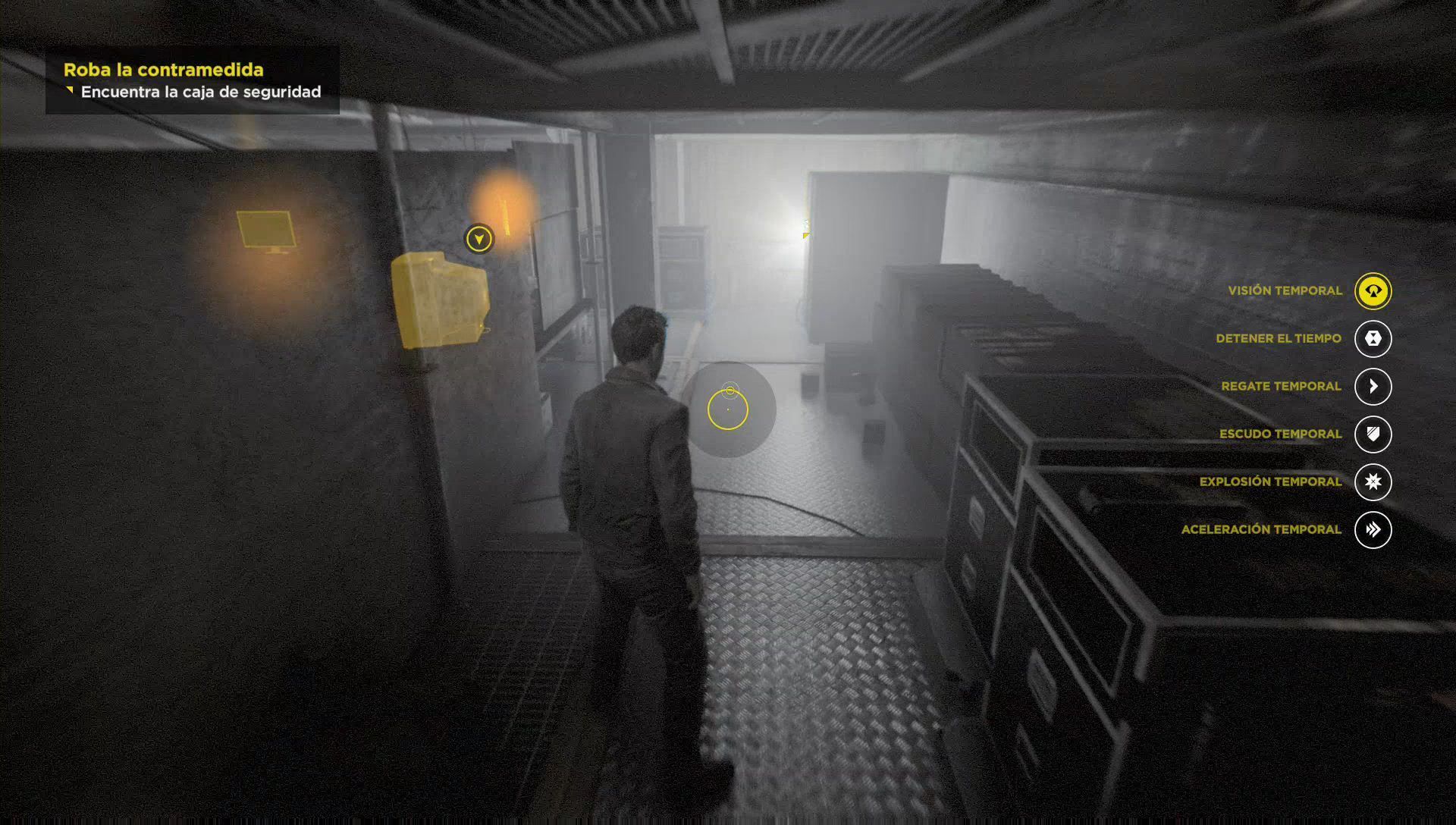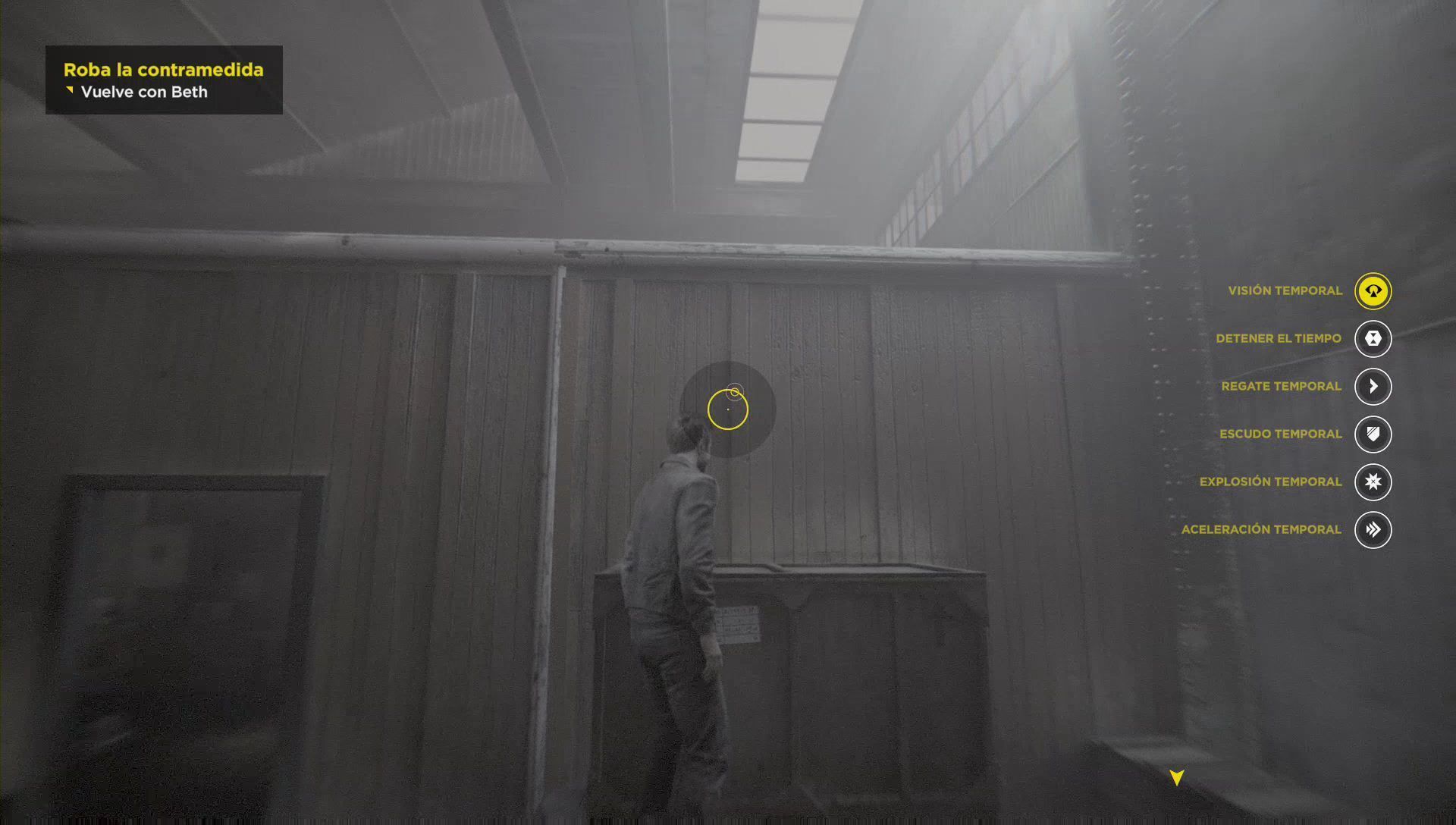 Rebobina el tiempo del cableado eléctrico y desplázate rápidamente a la pared izquierda para pulsar el interruptor. Esto activará todo el sistema. Sal de la caseta y trepa por las cajas de al lado para hacerte con una fuente de chronon.