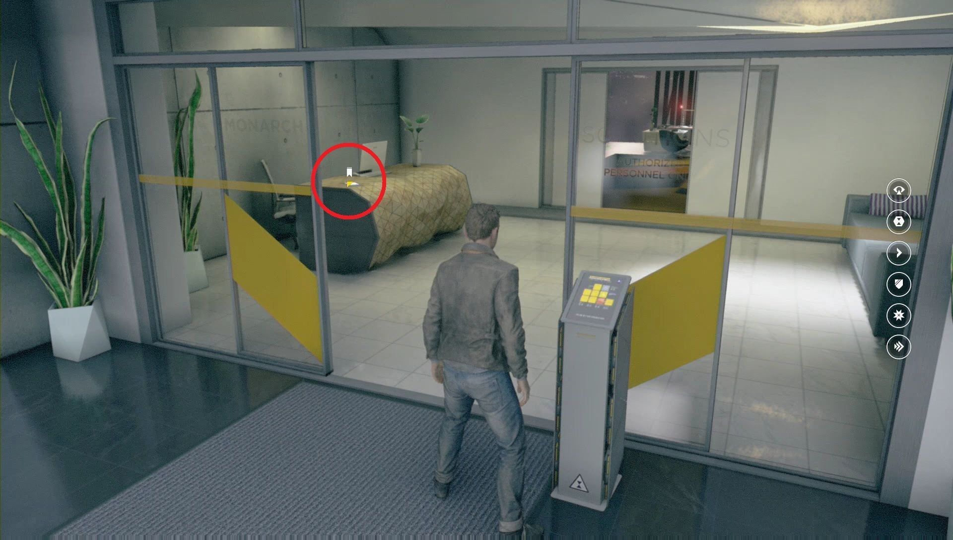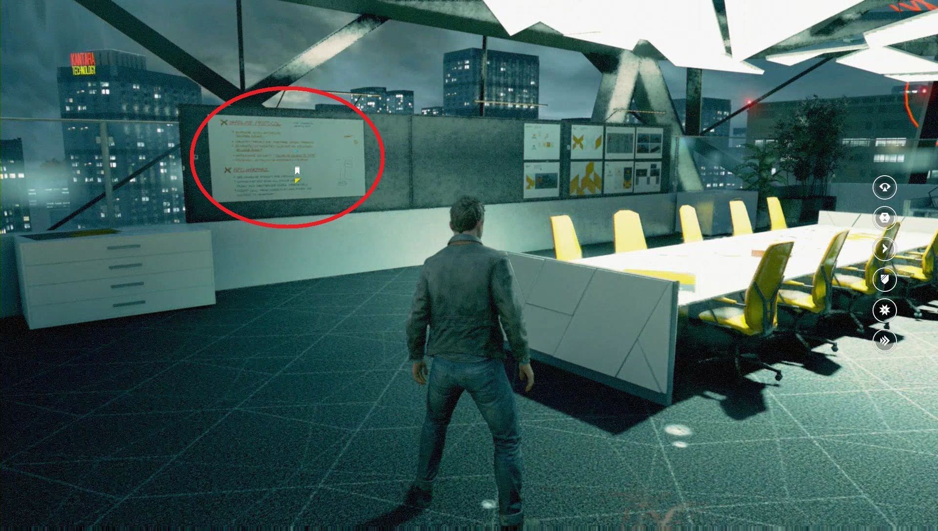 Sigue avanzando, cruza la puerta entreabierta y no tardarás en llegar a la oficina de Serene. Toca el panel y activa el eco del pasado. En la mesa hay una nota sin título.