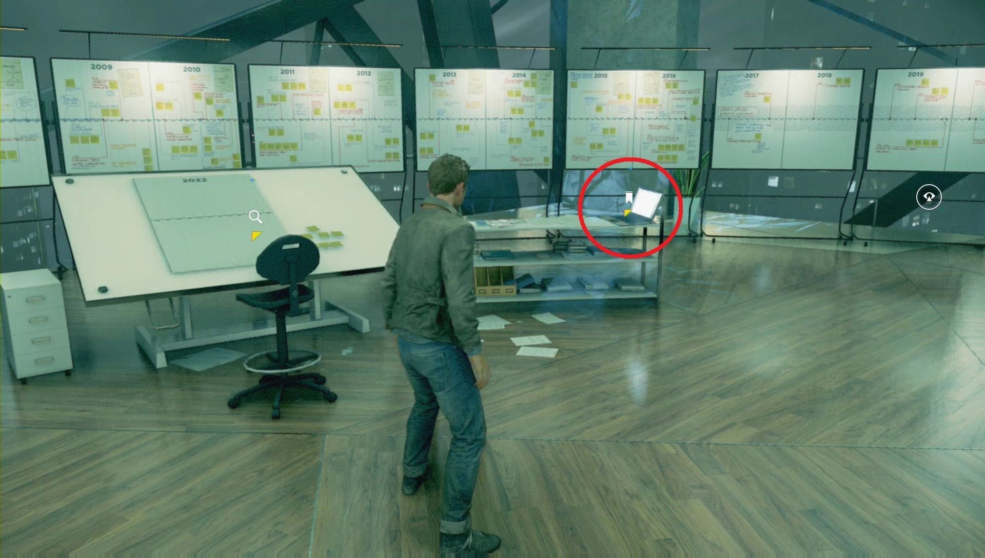 Acércate al escritorio de Serene. Tras la cinemática, vuelve a examinar el portátil para leer ARREGLA ESTE DESORDEN / Instrucciones finales.