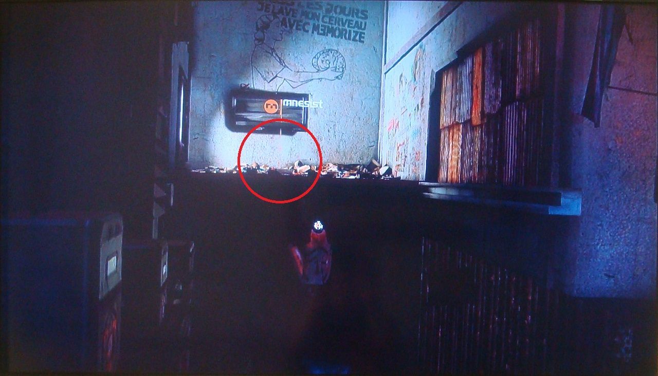 (Episodio 1) Después de la batalla de Leapers, al girar la esquina del balcón tras pasar por delante de un cartel de Leaking Brain.
